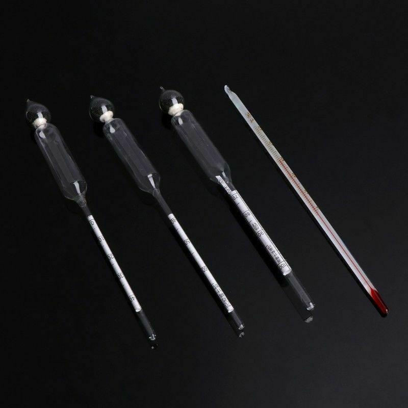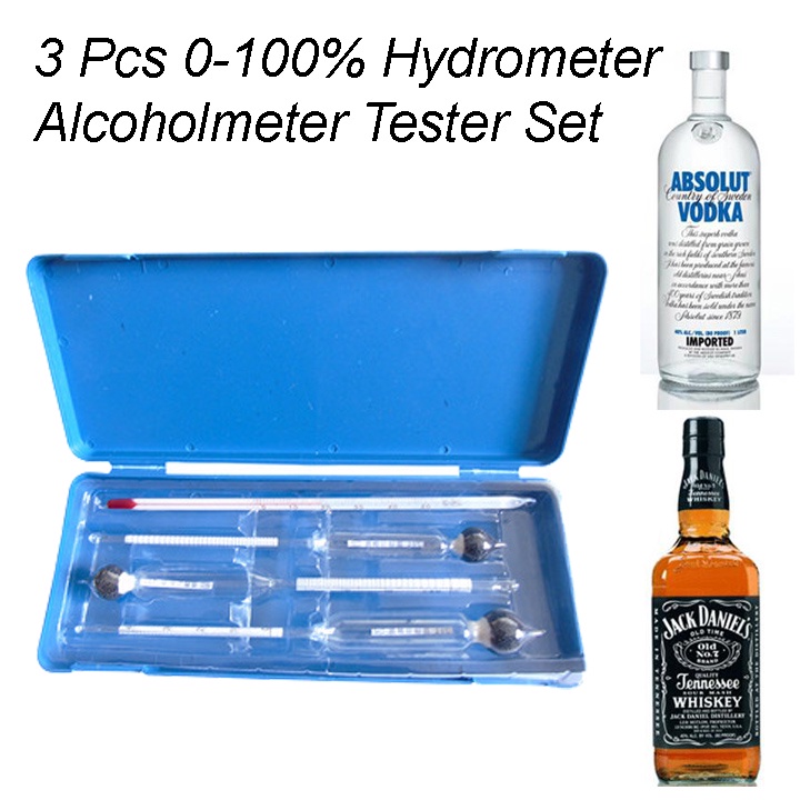 3 Pcs 0-100% Hydrometer Alcoholmeter Tester Set Alcohol Concentration Meter + Thermometer