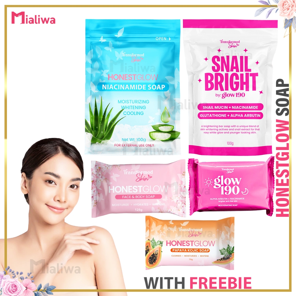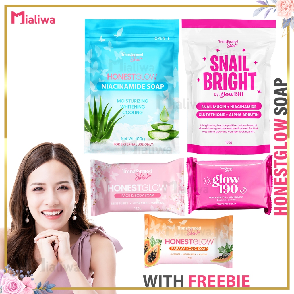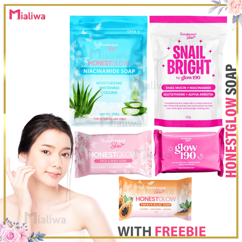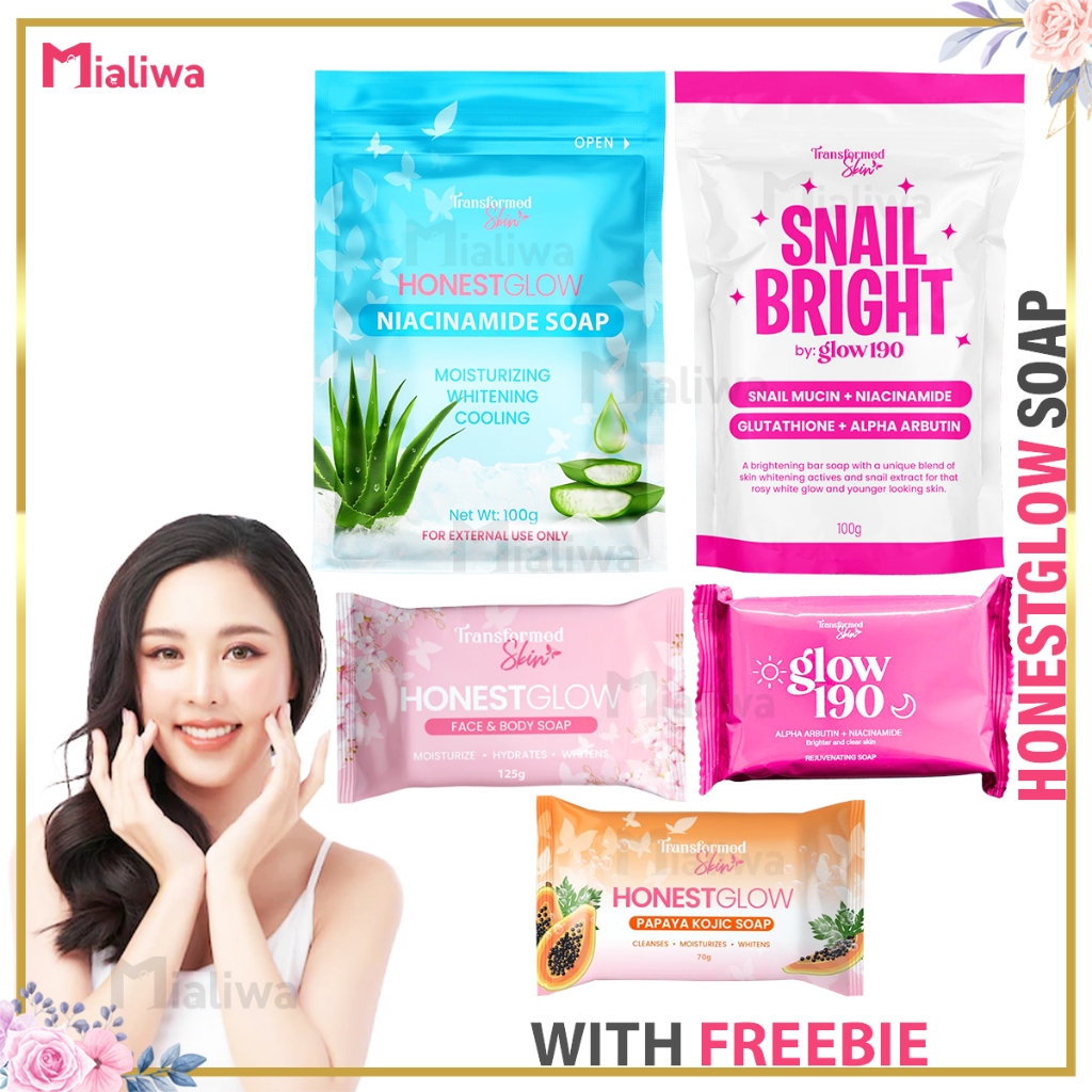 3 Pcs Honest Glow Papaya Kojic Soap Glass Skin Niacinamide Soap Glow 190 Snail Bright Rejuv Soap