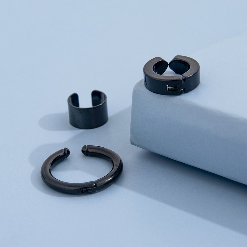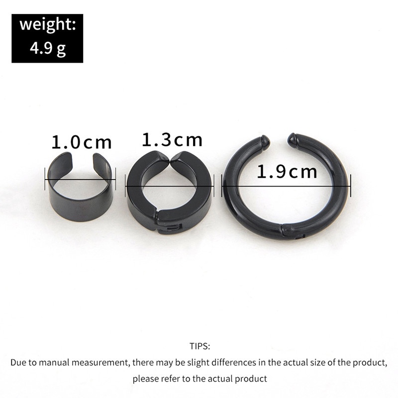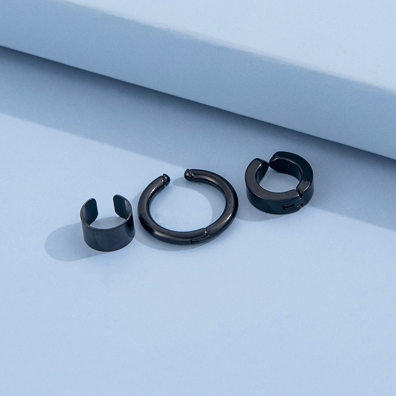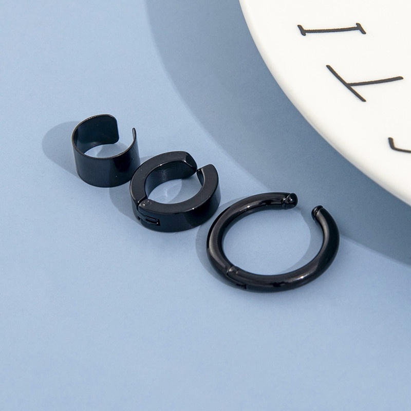 3 Pcs/Set Fashion Stainless Steel Non-Piercing Clip Earrings for Men Punk Jewelry Accessories
