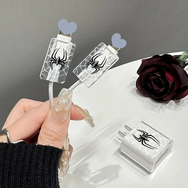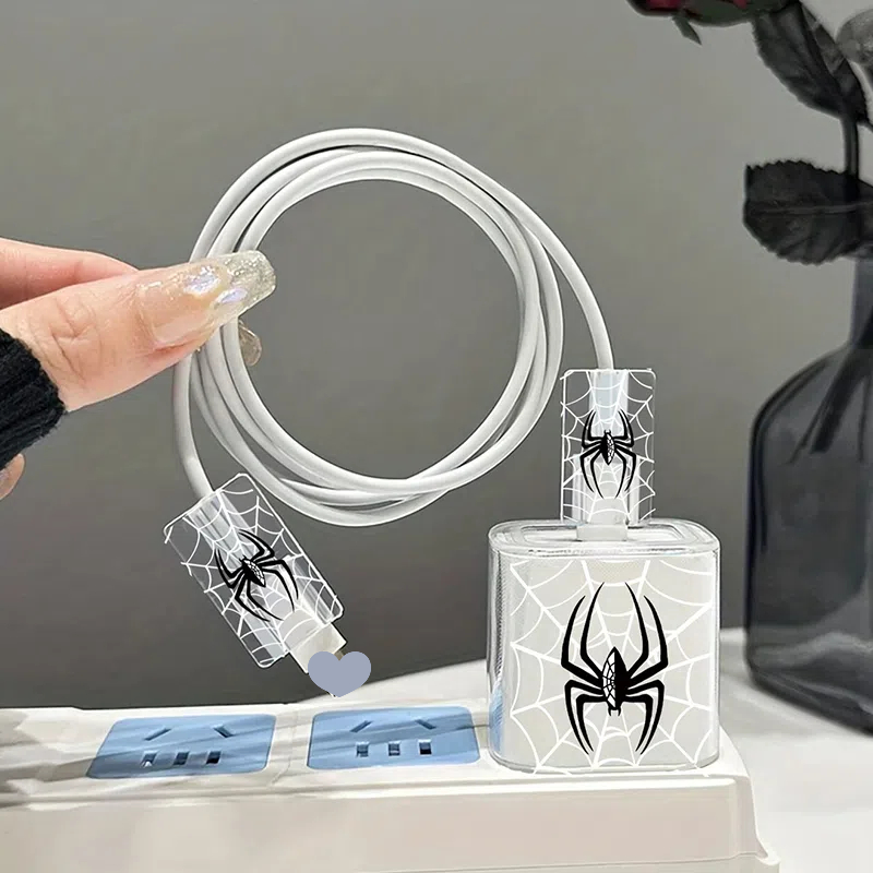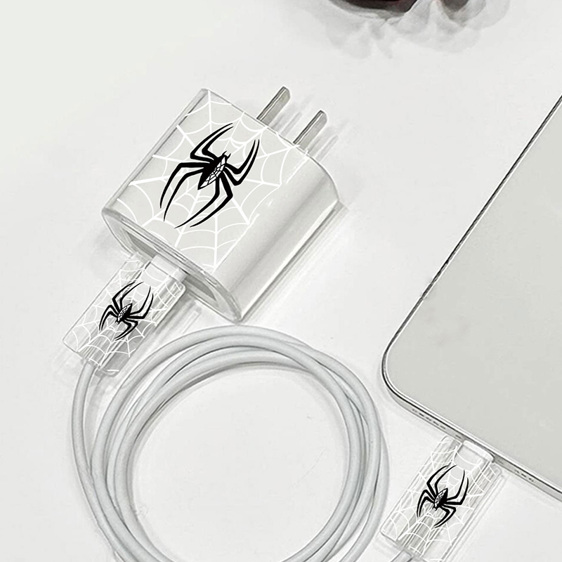 3 Piece Set Black Spider Charging Head Cover 20w Charging Head Cover 18w Fast Charging Head Charger Protective Case Data Cable Protective Case