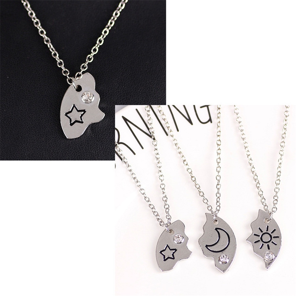 3 Piece Set Fashion Best Friend Necklace Sun Moon Splicing Pendant Forever Friendship BFF Men And Women Alloy Necklace Hot