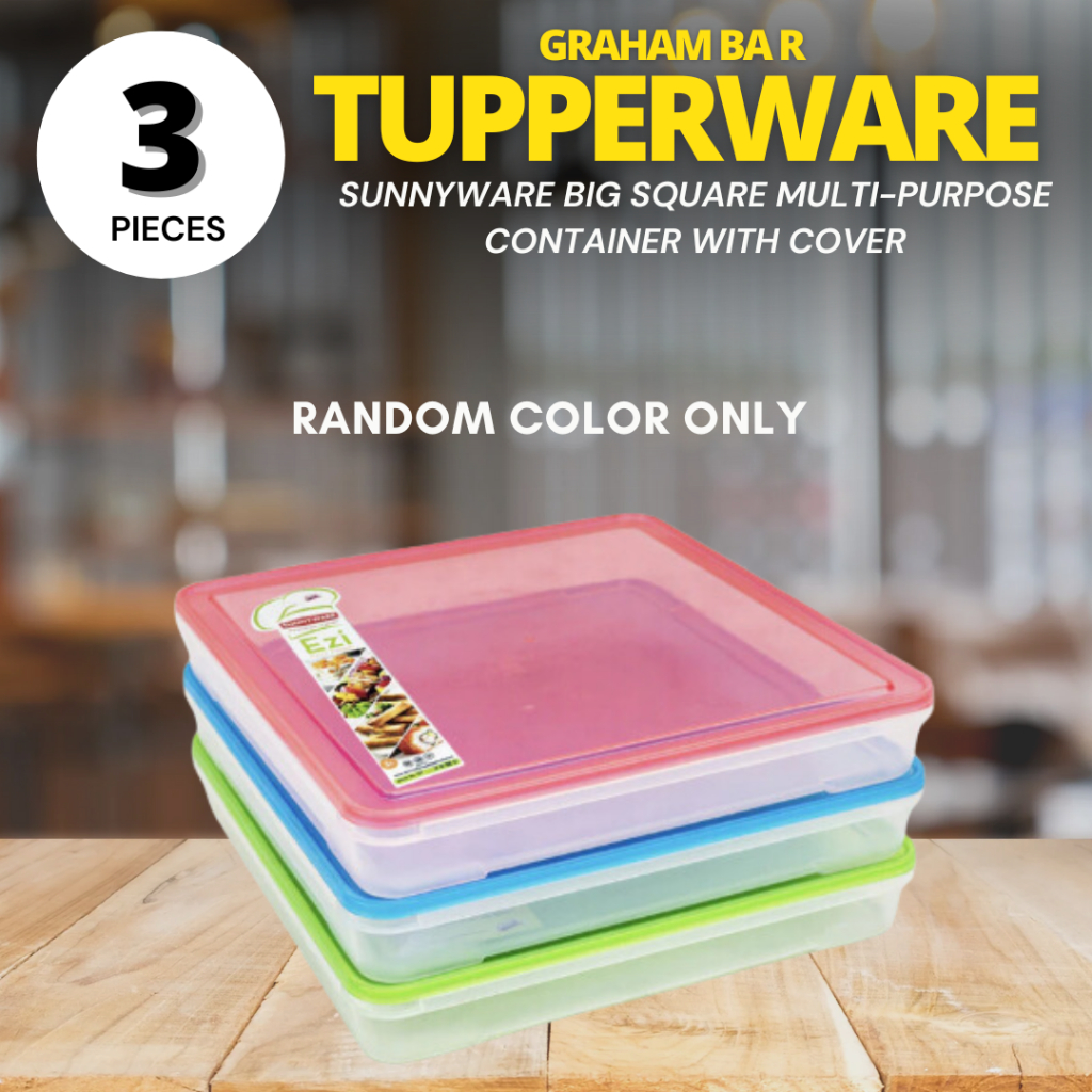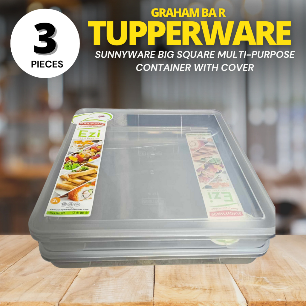 3 Pieces Set- Graham Bar Tupperware 3 Liters Big Square Food Keeper /Microwavable/ Salad /Graham Co