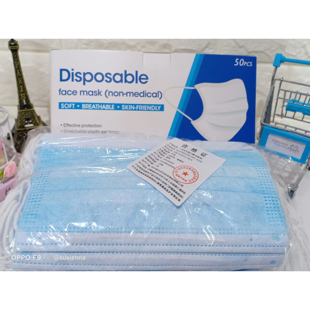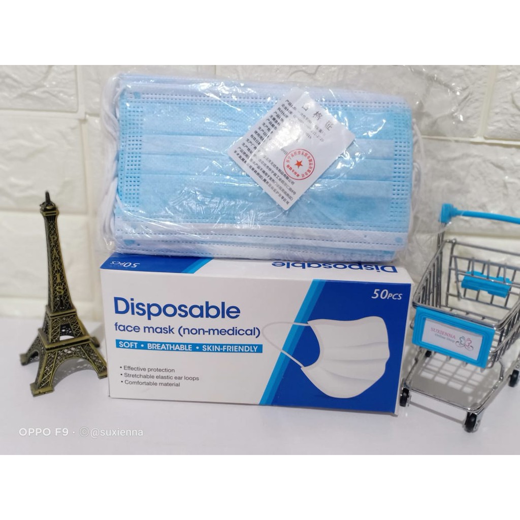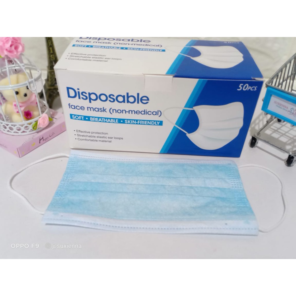 3-ply Earloop Mask biru - 3-ply Blue Disposable Face Mask (not Headloop)
