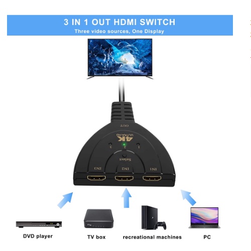 3-Port 3 in 1 HDMI Switch Splitter With Cable HD 1080P 3D Switcher Supports HDTV DVD PS4 PS3 Xbox