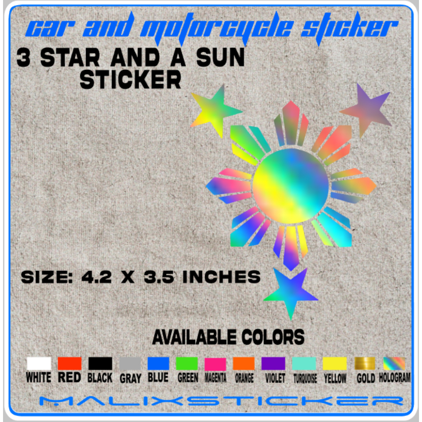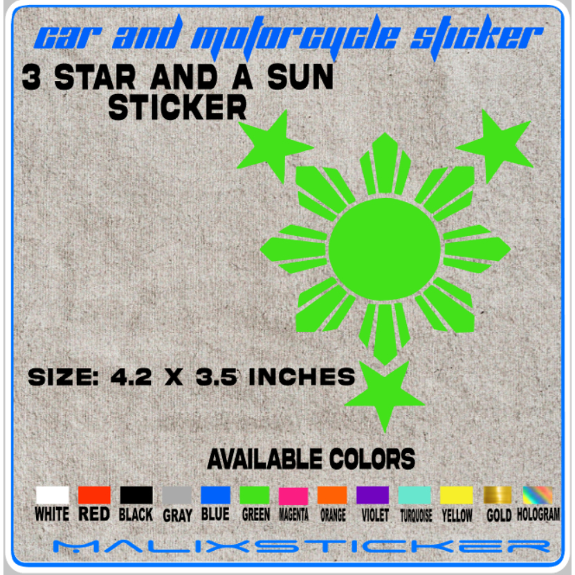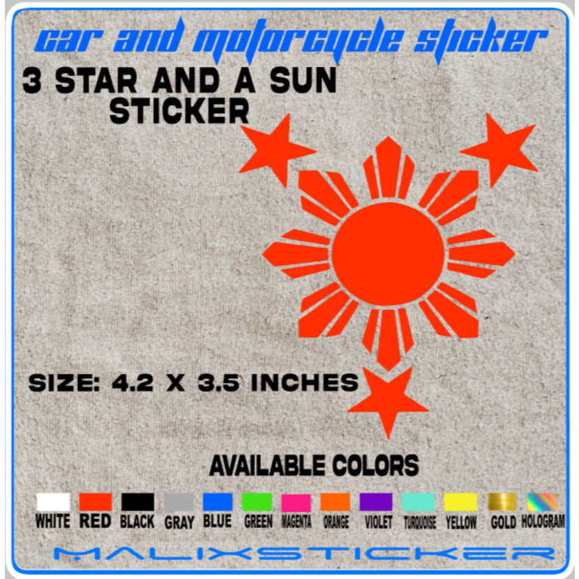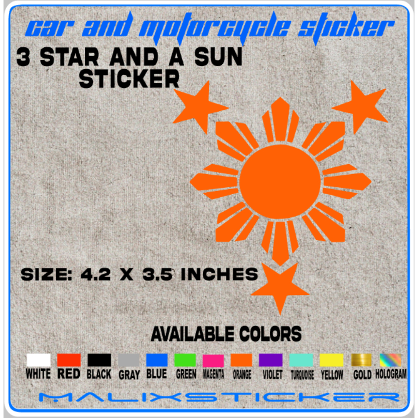 3 STAR AND A Sun Sticker decals