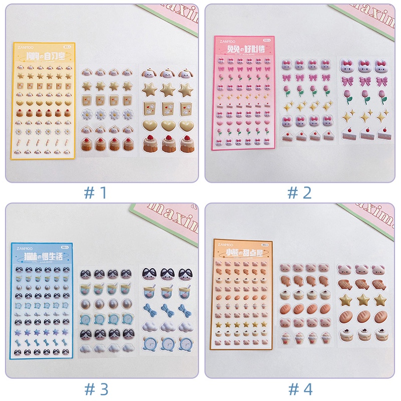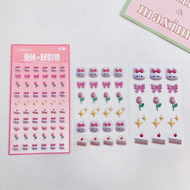 3 Sheets Cartoon Three-Dimensional Crystal PET Deco Stickers Set
