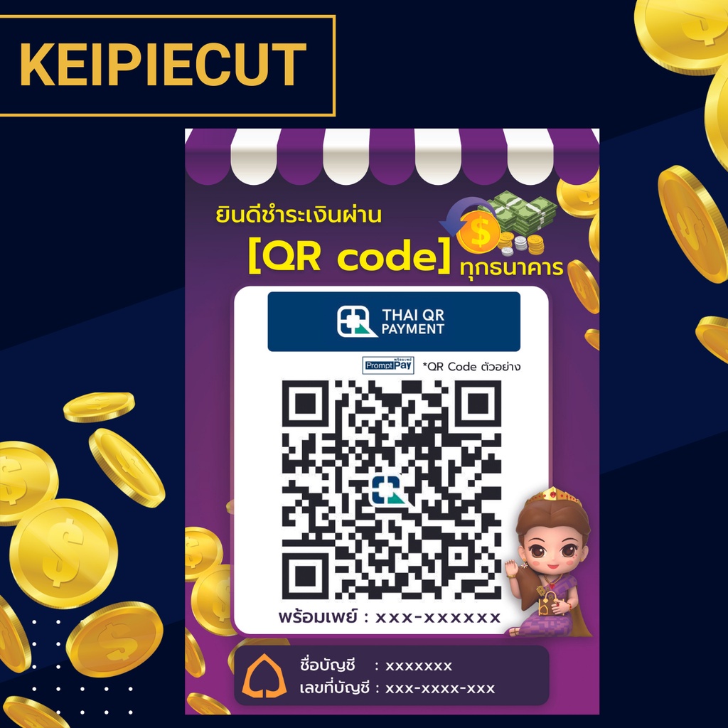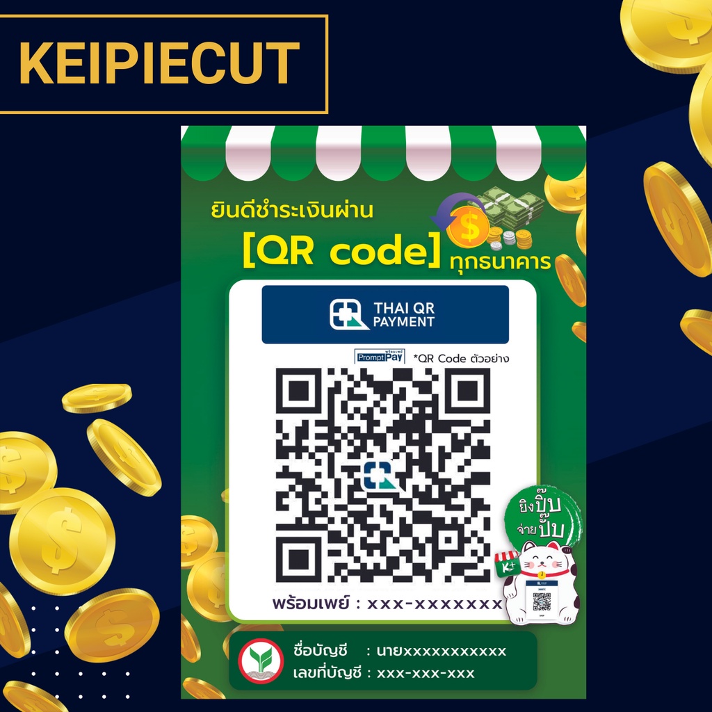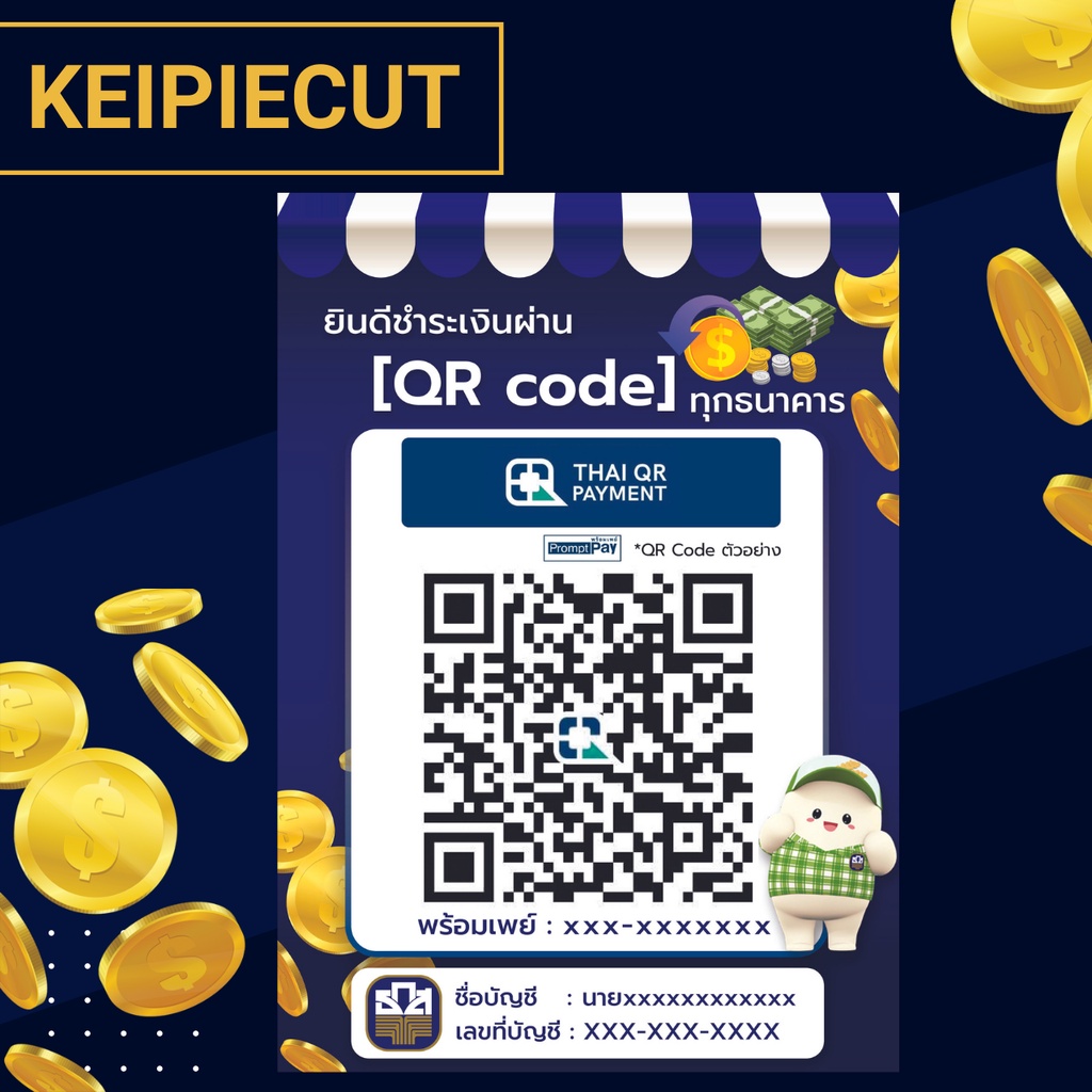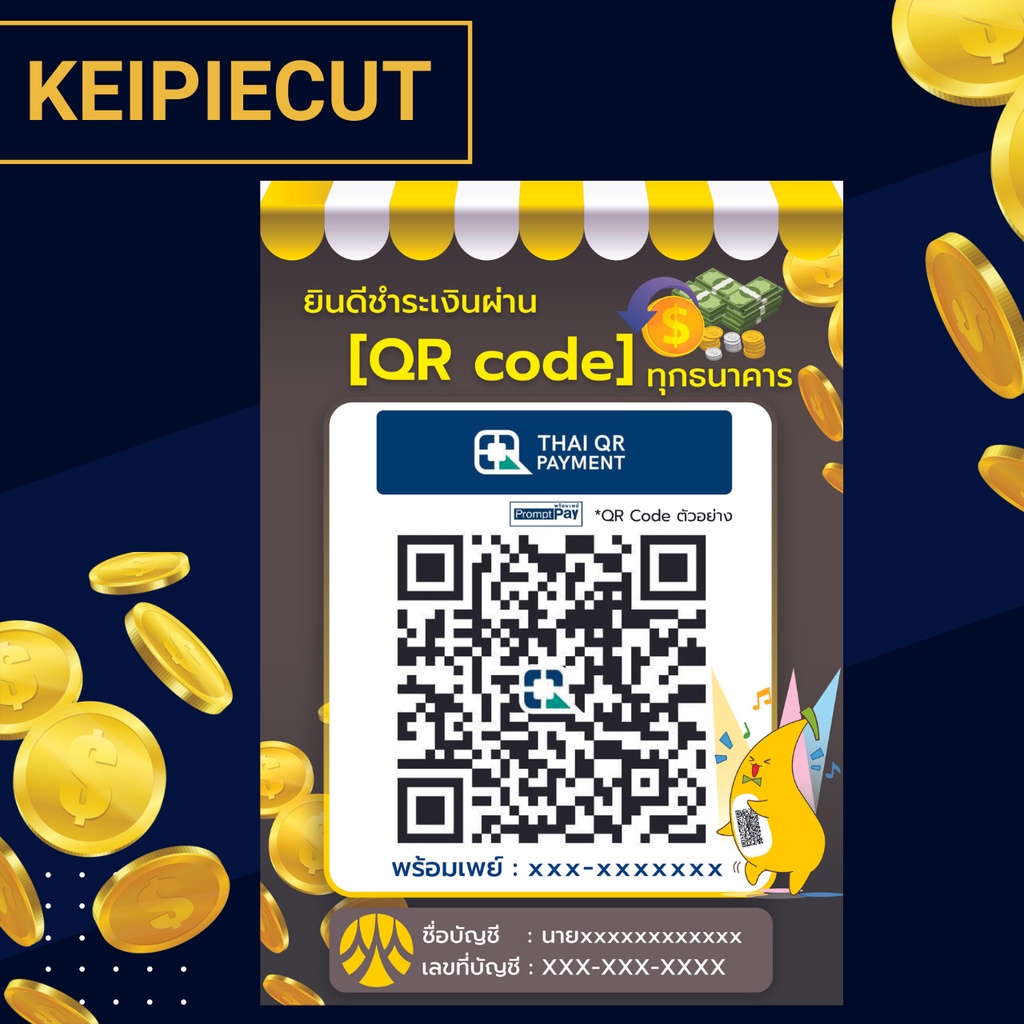Square Desktop Qr Code Sign Payment Scan Transfer Money Via Qr-Code Promptpay Waterproof Plastic Coating