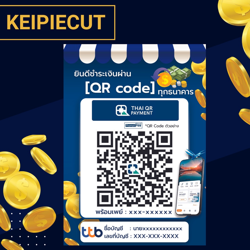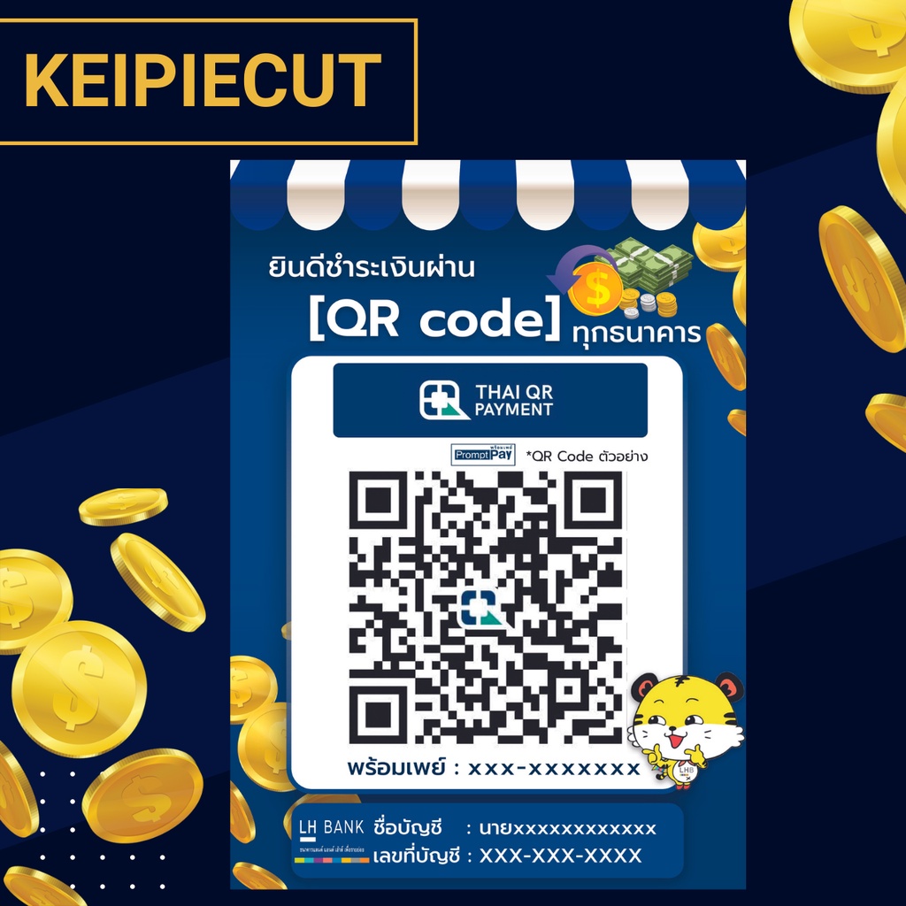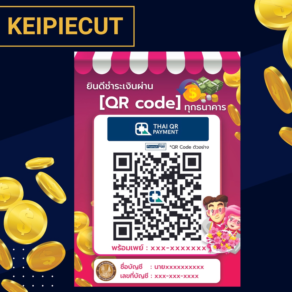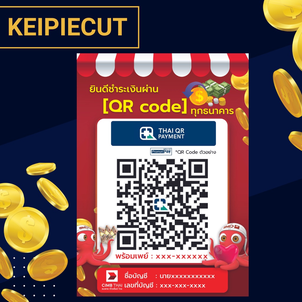 Square Desktop Qr Code Sign Payment Scan Transfer Money Via Qr-Code Promptpay Waterproof Plastic Coating