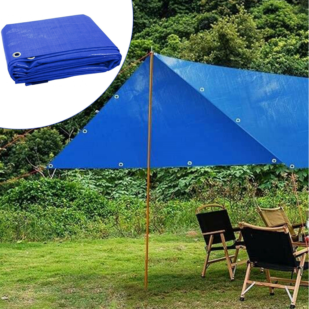 3 Sizes Of Heavy Duty Tarpaulin Waterproof Cover Tarp Ground Camping Blue Sheet