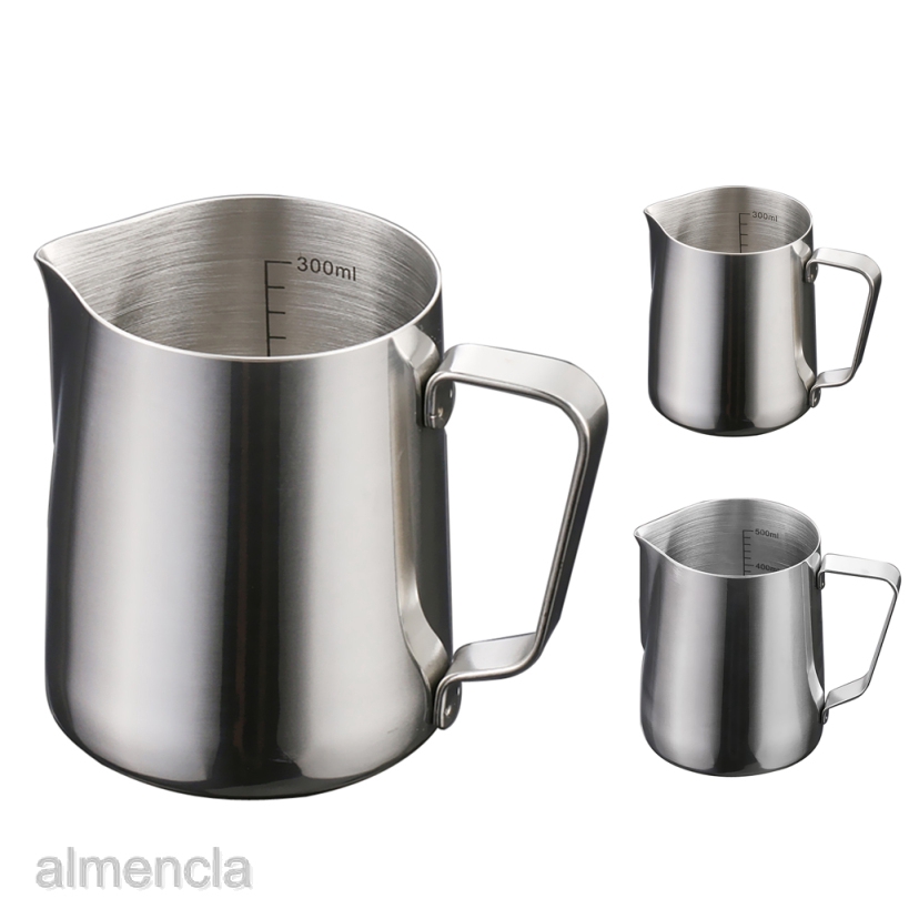3 Sizes Stainless Steel Milk Pitcher Measuring Scale Jug Frother