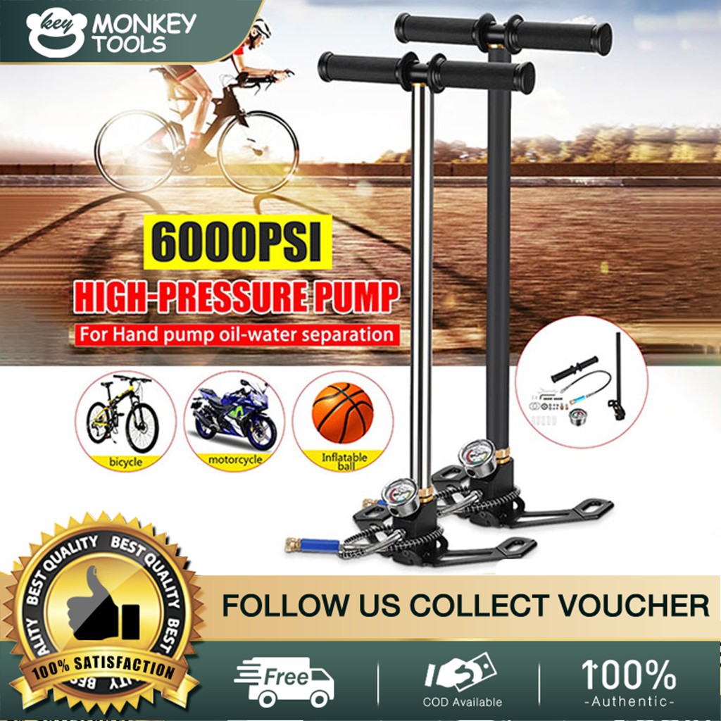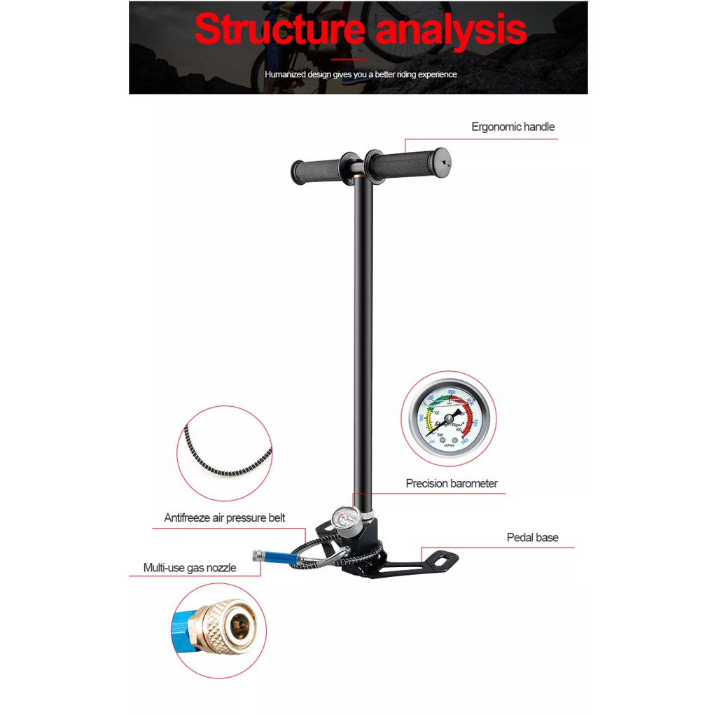 3-Stage High Pressure PCP Hand Pump for Airguns & Tire Inflation - 4500-6000 PSI with Gauge