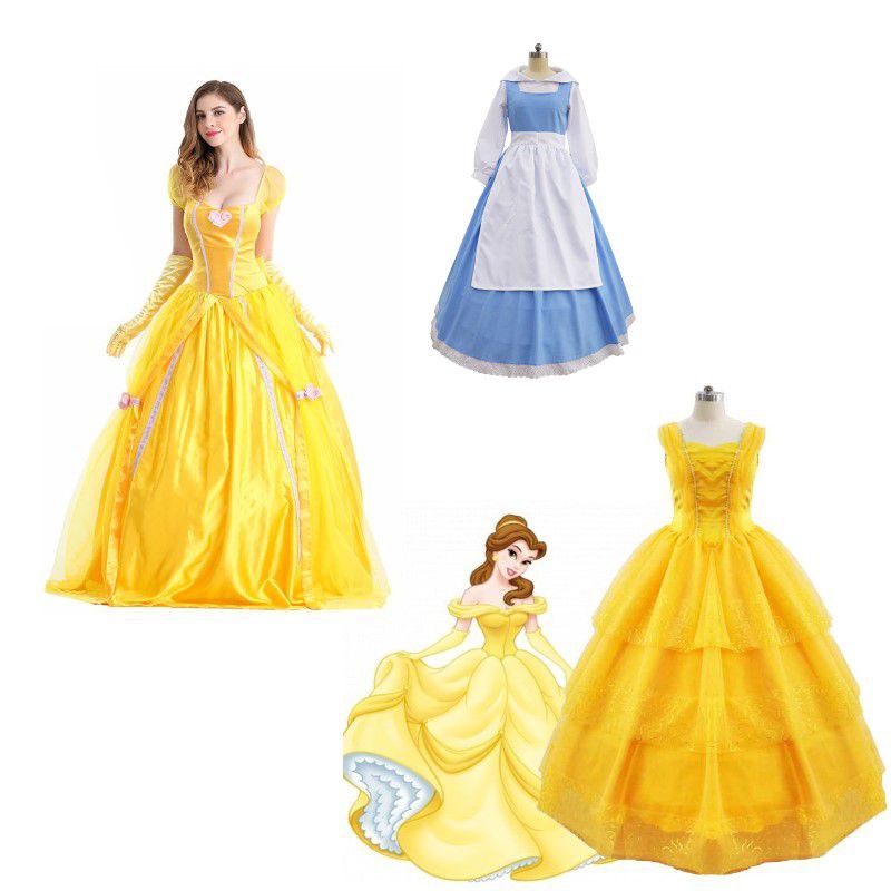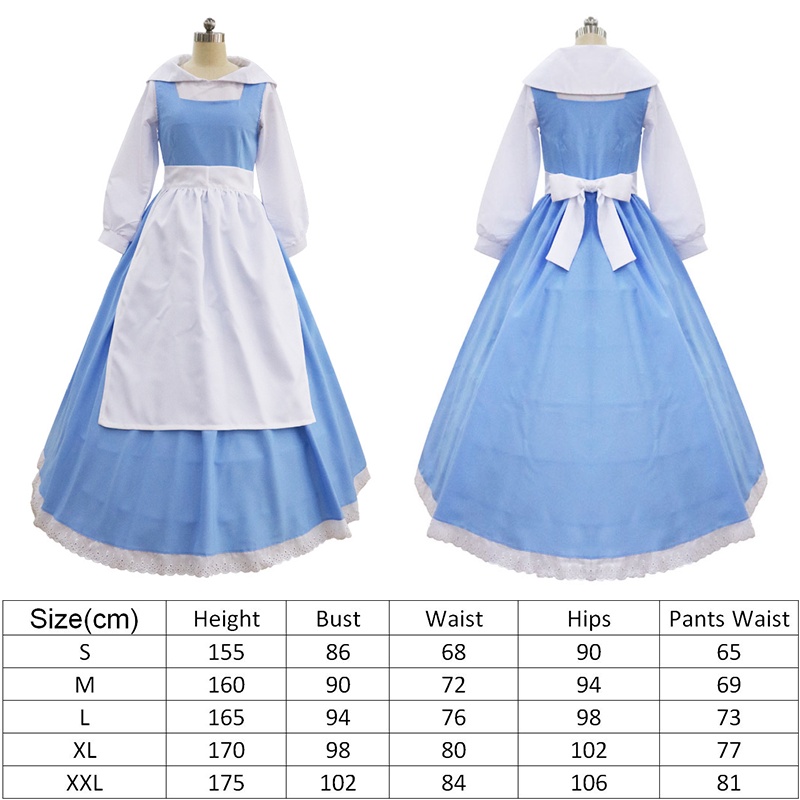 3 Styles Beauty And The Beast Belle Blue Maid Dress Women Ball Gown Fancy Dress Halloween Cosplay Costume