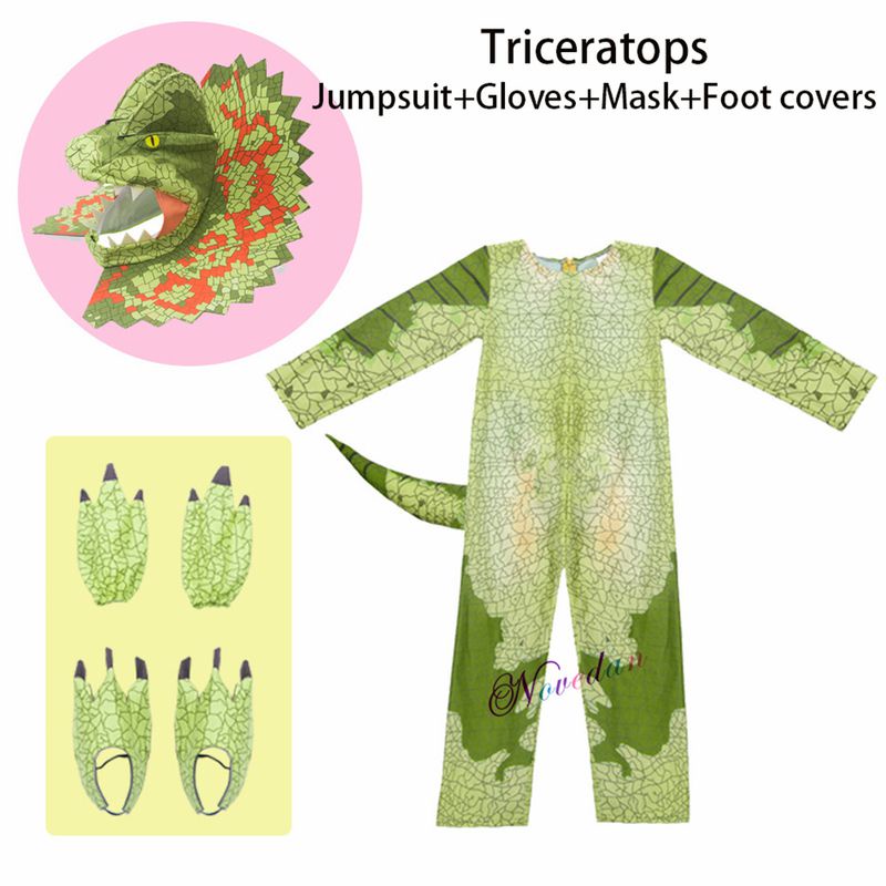 3 Styles Jurassic Park Dinosaur Cosplay Costume Kids T-Rex Triceratop Outfit Halloween Role Play