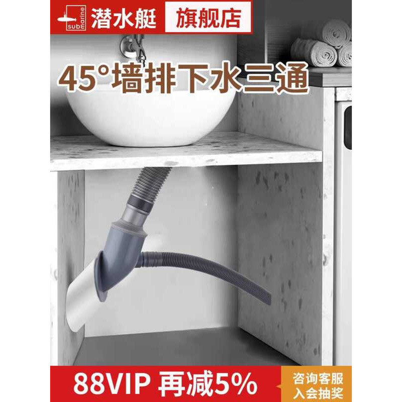 3 Submarine 45 Degree Wall Drain Washing Machine Dedicated Drainage Three-Way Drain Pipe Floor Drai