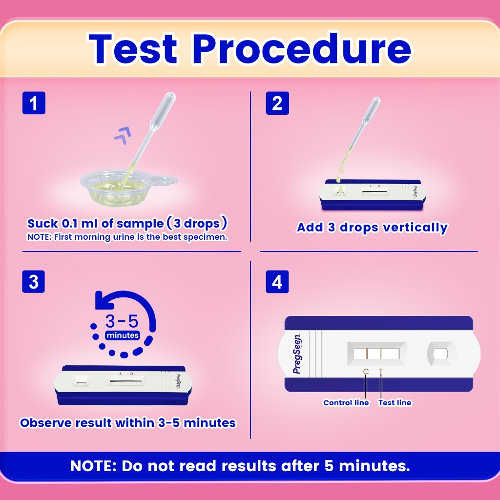 3 Tests/Box PREGSEEN Early Pregnancy Test Kit HCG Cassette Tests 99.99% Accuracy Pregnancy Strip