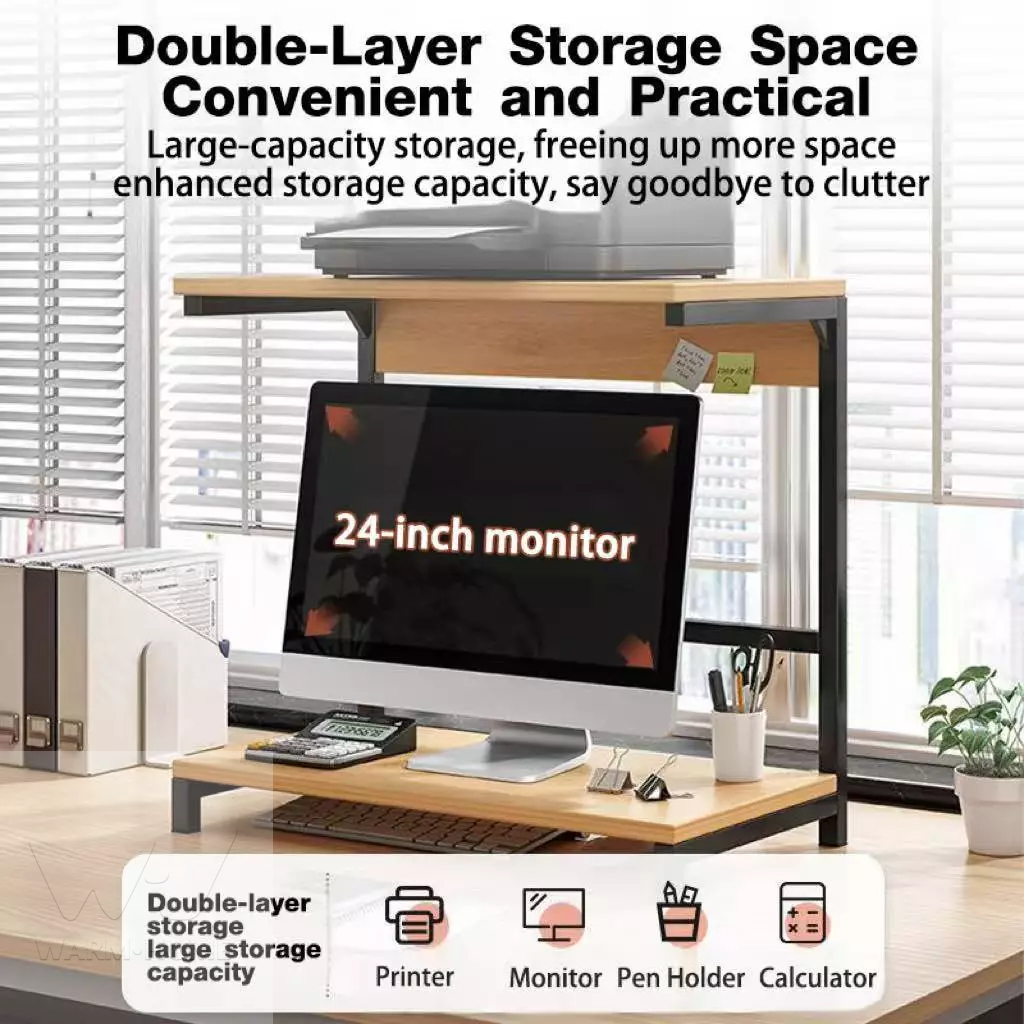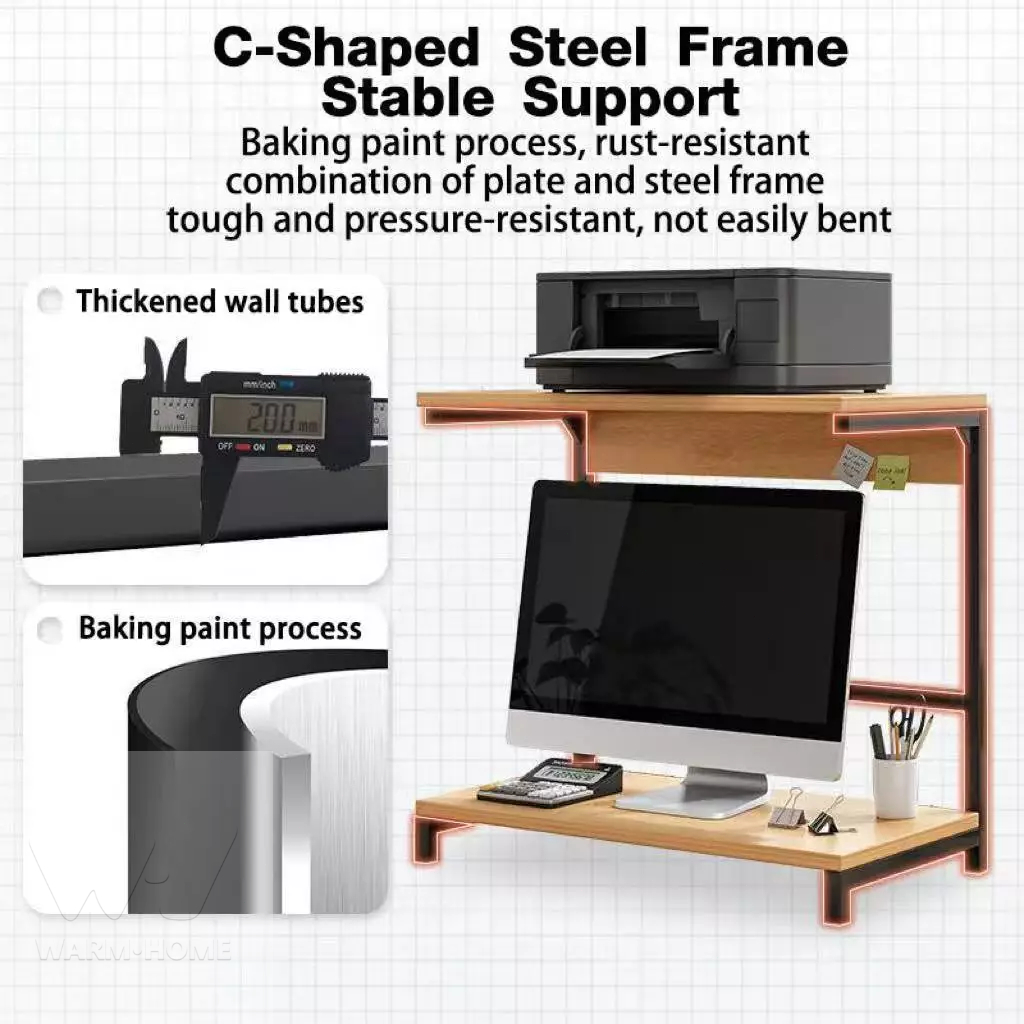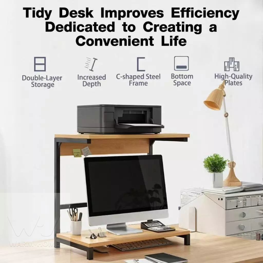 3-Tier Desk Storage Shelf for Office Computer & Printer Stand Space Saving Bookshelf Multifunctional