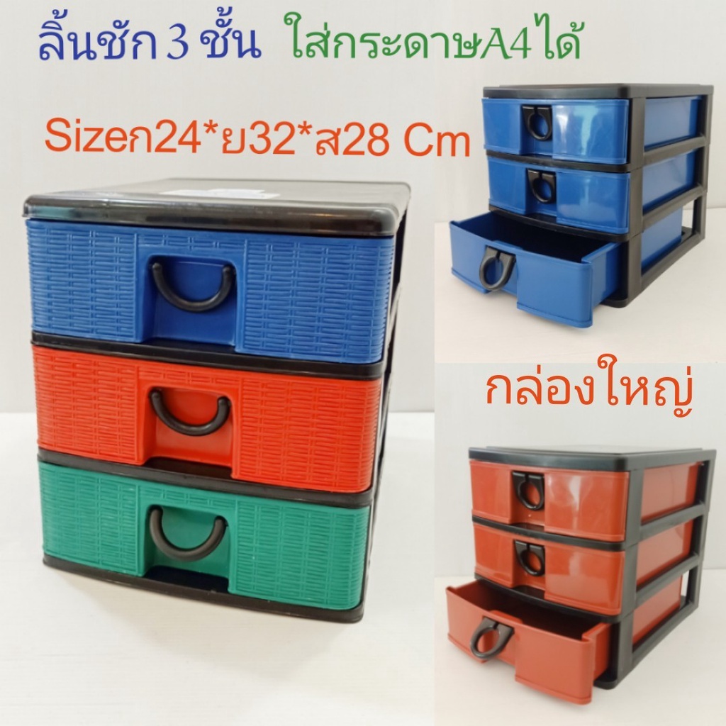 Drawer Cabinet 3-Layer Shelf Large Plastic Can Hold A4 Paper Size W24*L32*Height 28 cm.