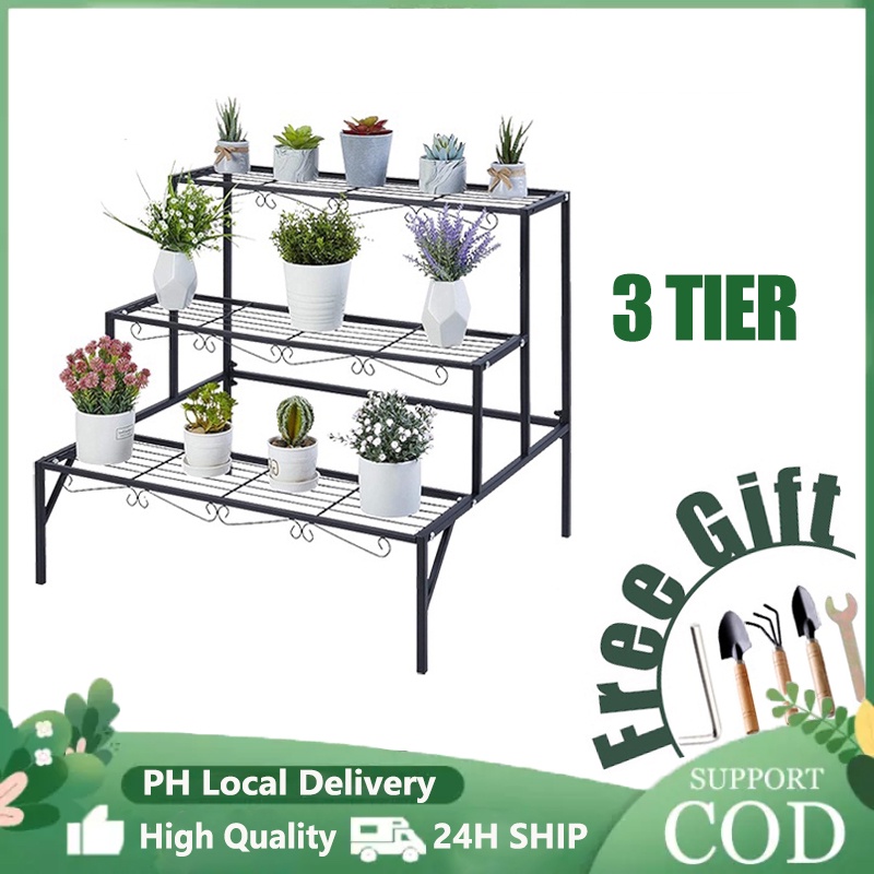 3 Tier Ladder Plant Rack Stand Indoor Outdoor Steel Flower Display