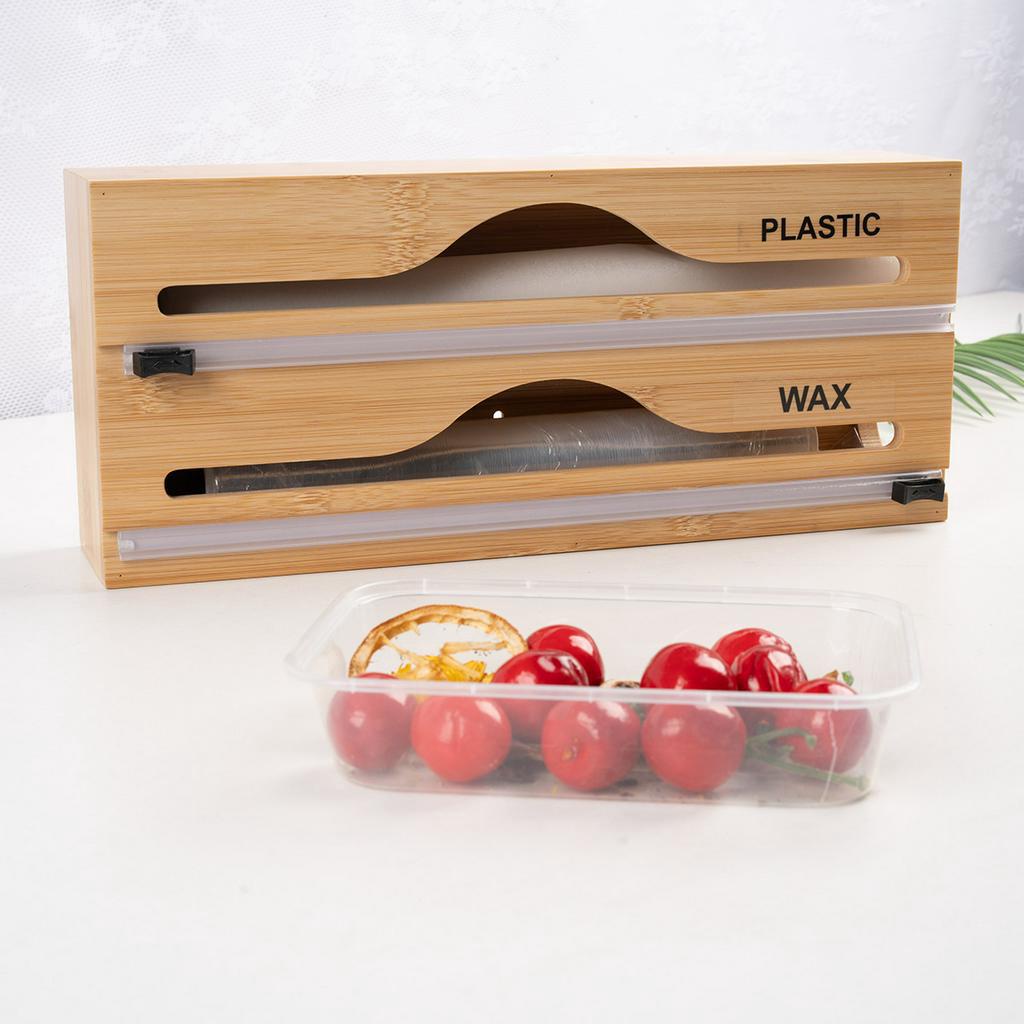 3 in 1/2 in 1 Bamboo Plastic Wrap Cutter Desktop Wall-Mounted Plastic Wrap Storage Box Kitchen Drawer Three-Grid Tin Foil Paper Plastic Wrap Sheepskin Paper Cutting Box