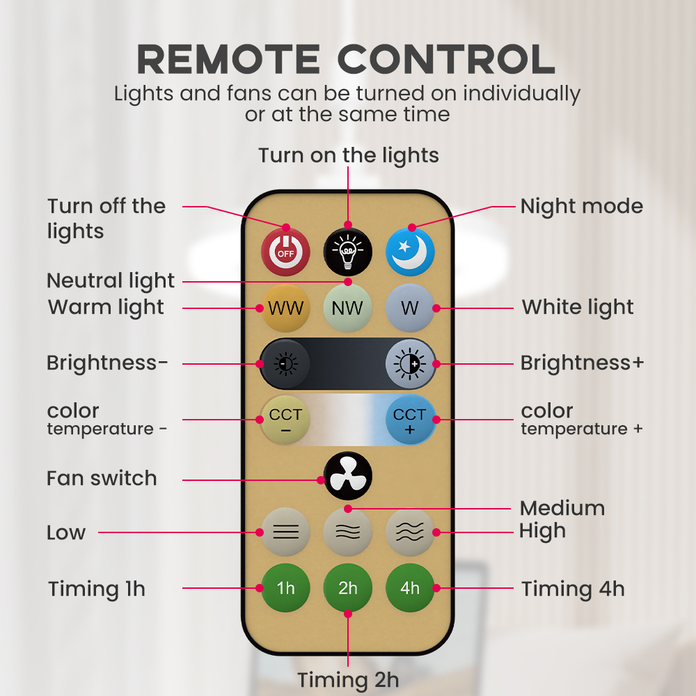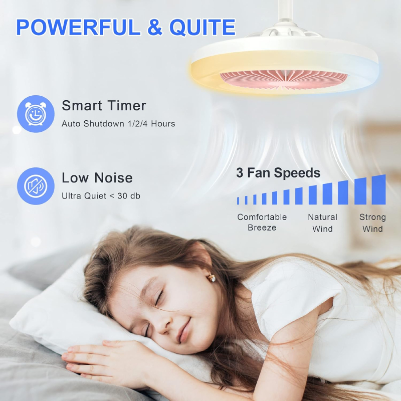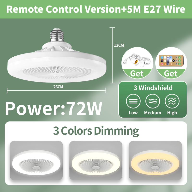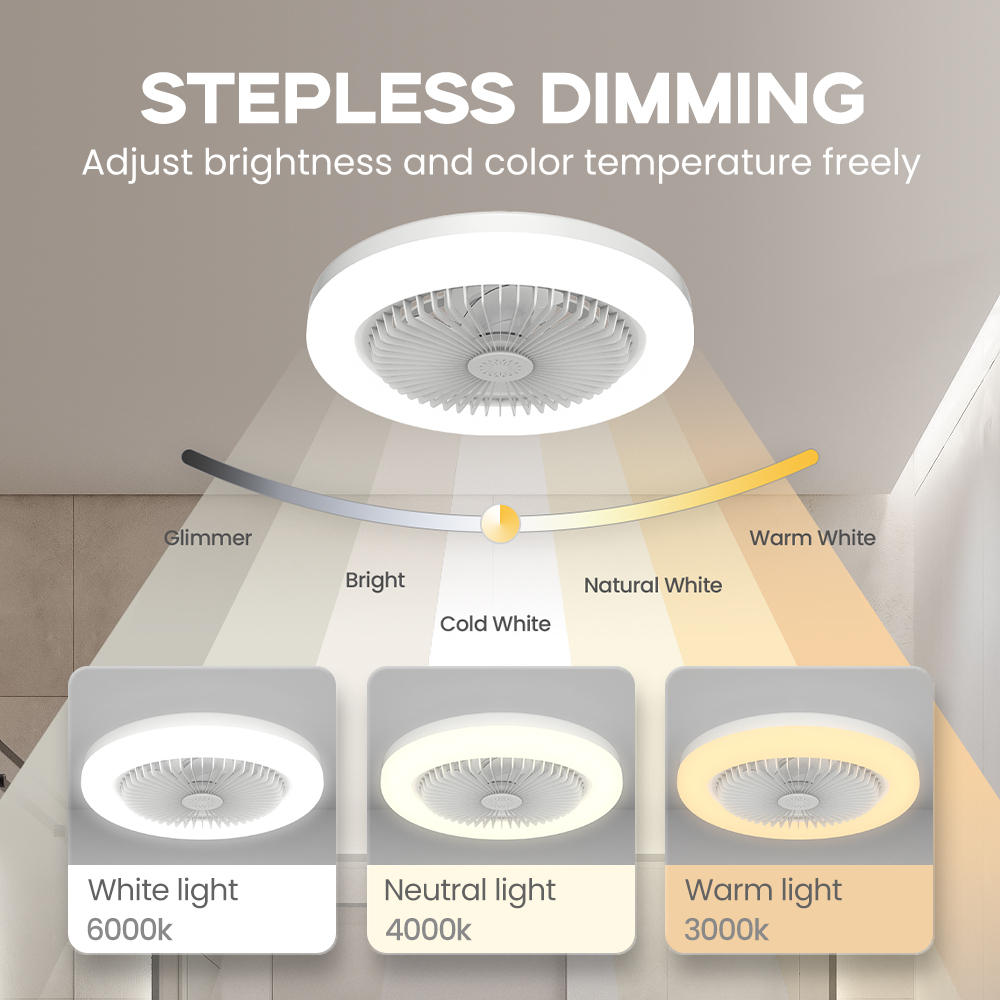 3-in-1 Ceiling Fan with Remote Control 3 Color Light Bulb (Warm/White/Cool) for Living Room Lightin