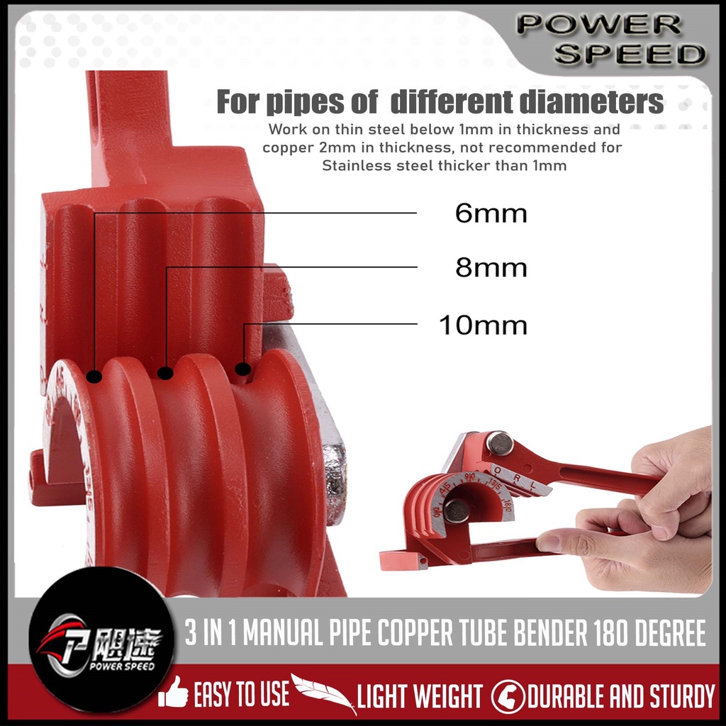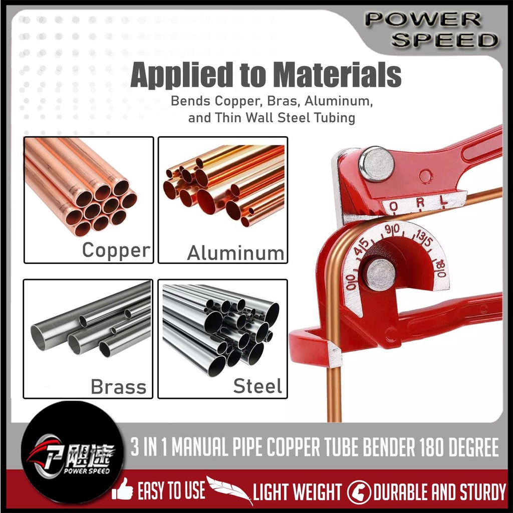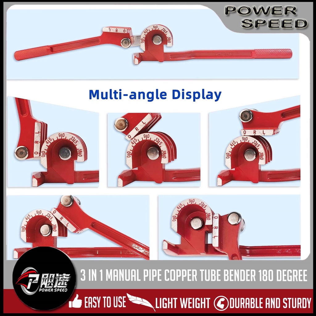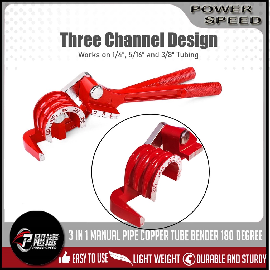 3 in 1 Copper Tube Bender For 1/4, 5/16, 3/8, Manual Tubing Bending Machine ( 0-180 Degrees)