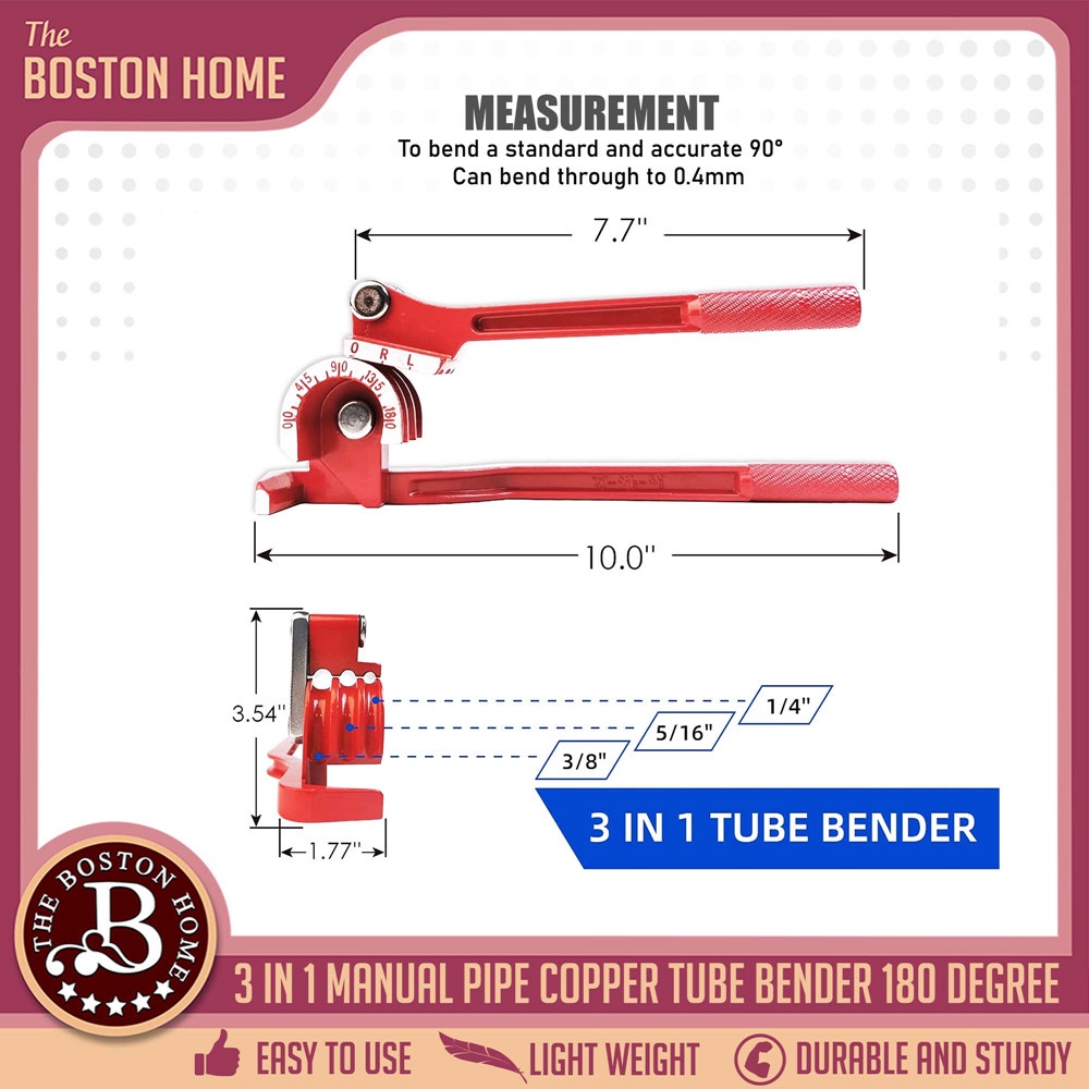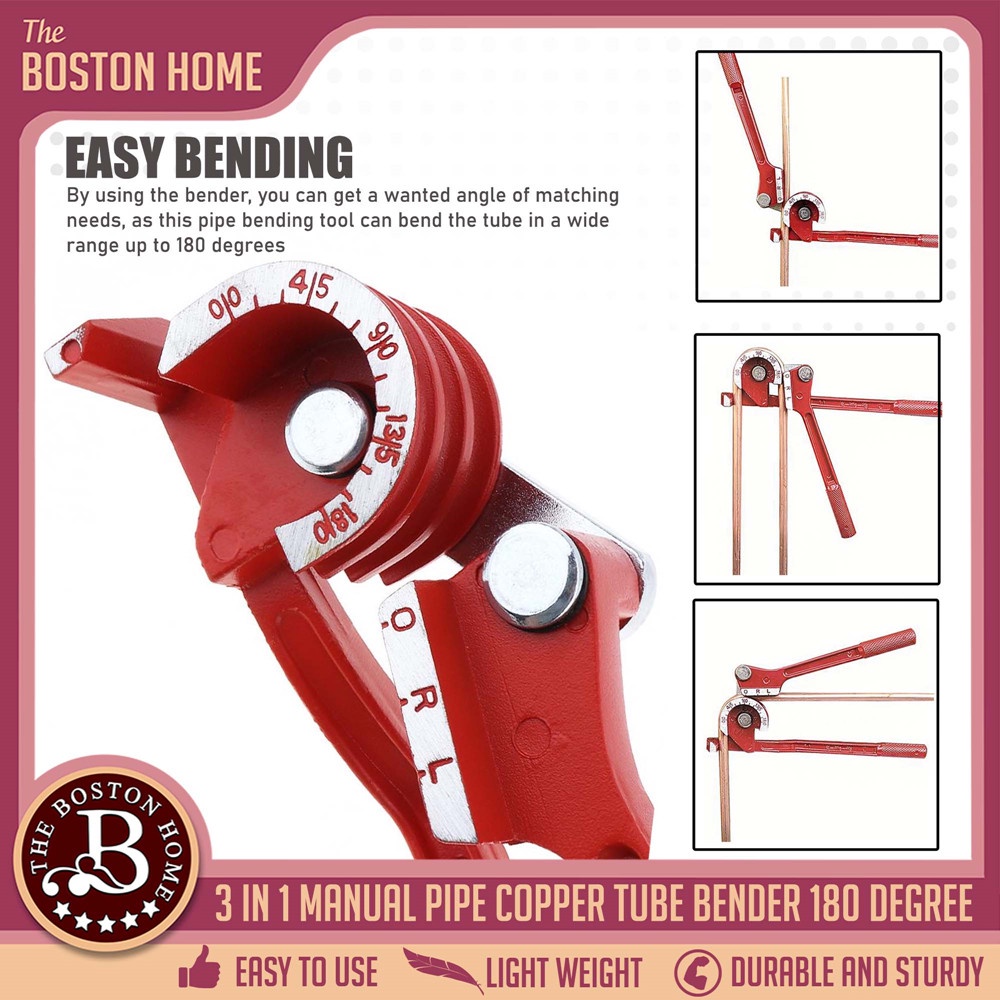 3 in 1 Copper Tube Bender For 1/4, 5/16, 3/8, Manual Tubing Bending Machine ( 0-180 Degrees)