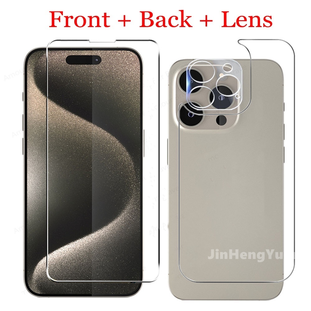 3-in-1 Front Back Screen Protector for Iphone 15 14 13 12 11 Pro Max Camera Lens Tempered Glass Film