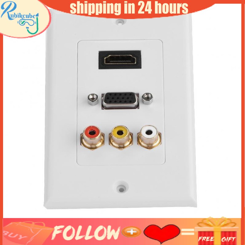 3-in-1 HDMI VGA RCA Ports Multimedia Panel Outlet Socket