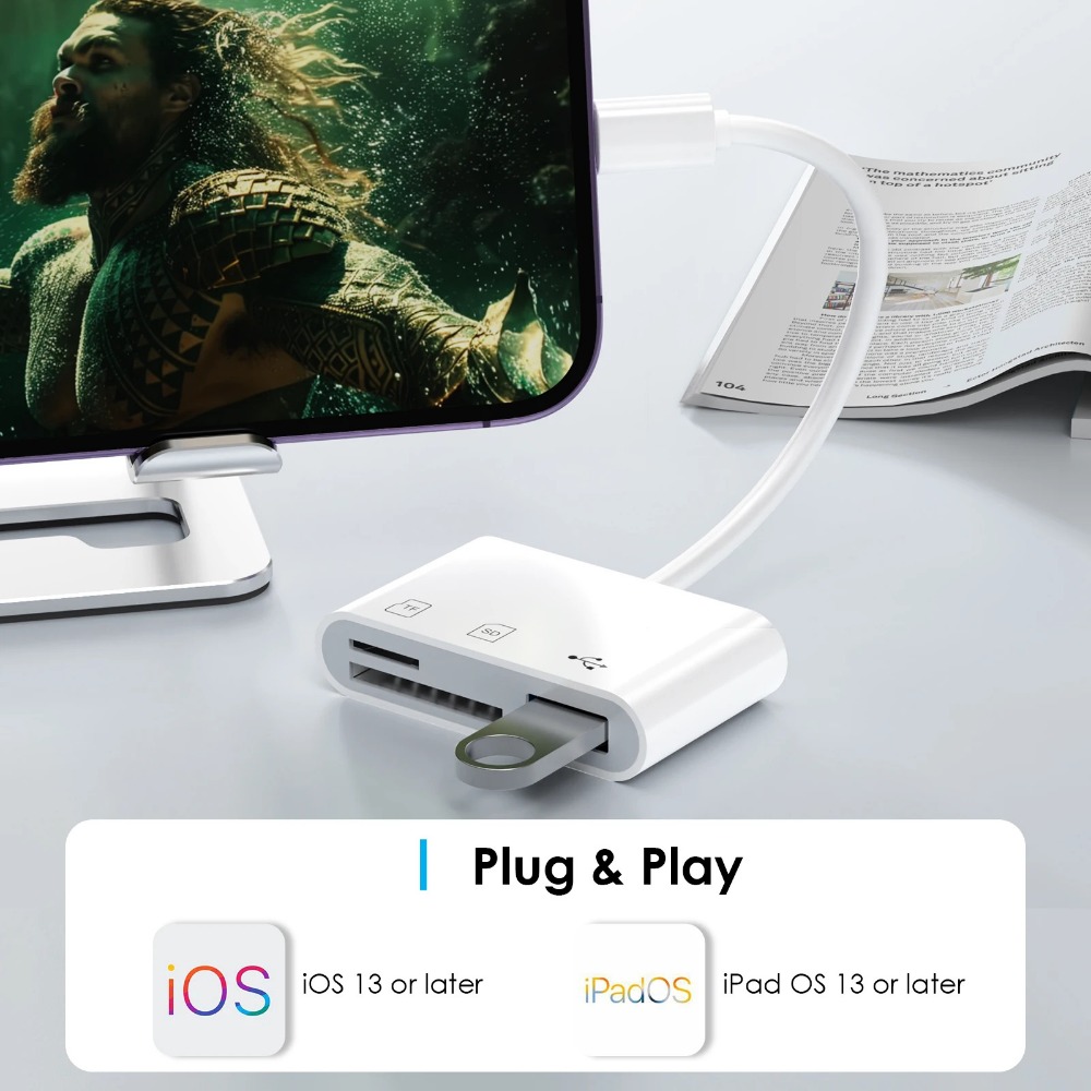 IOS to SD TF USB Card Reader 3 in 1 for iPhone 14 13 12 11 with USB3.0 Camera Adapter Game Supports