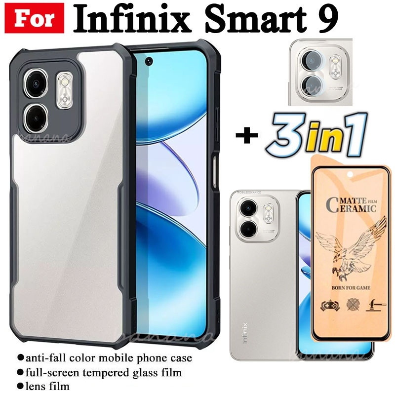 3 in 1 Infinix Smart 9 Shockproof Phone Case for infinix Smart9 X6531 Smart 8 8 Pro 8 Plus 10 Ceramic Frosted Film+Camera Lens Film