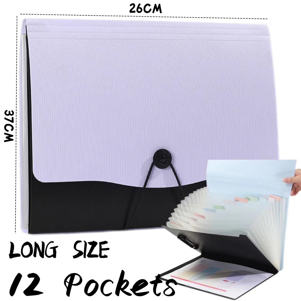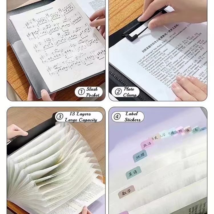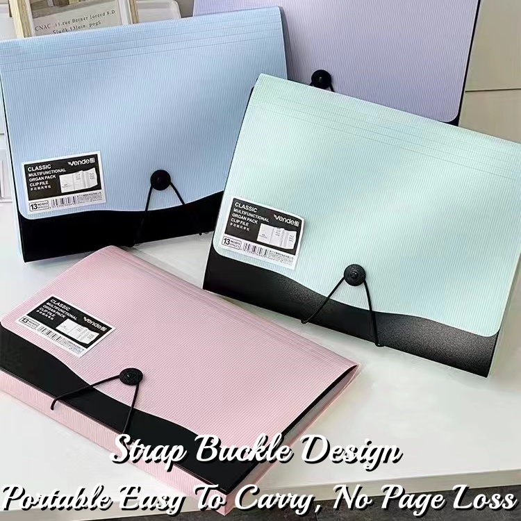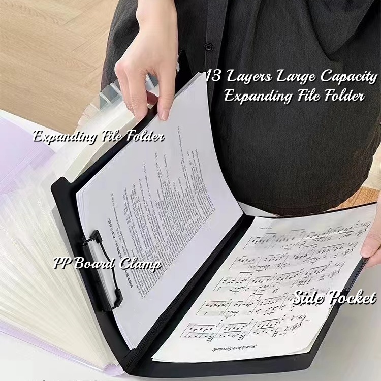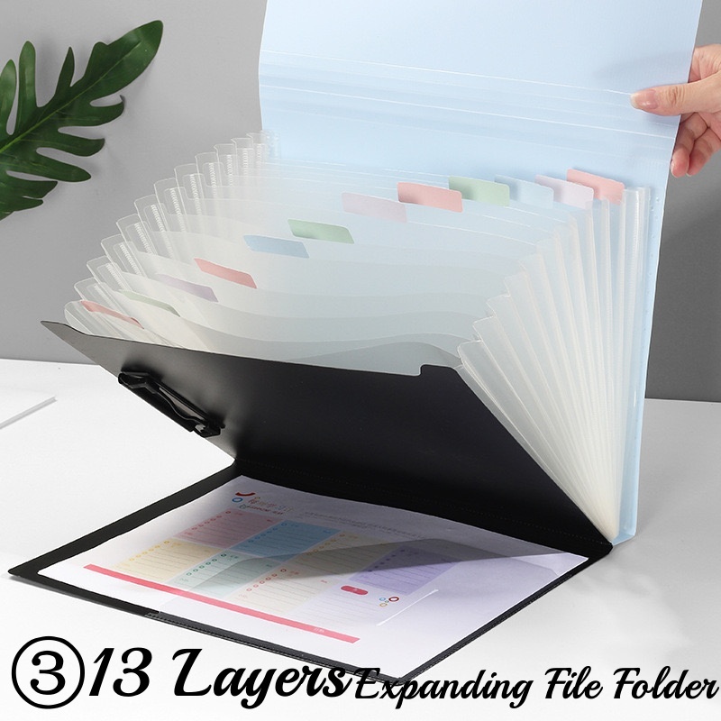 3 in 1 Long Expanding File Folder Organizer Paper Organizer with Clip Board+Side Pocket 13 Layers