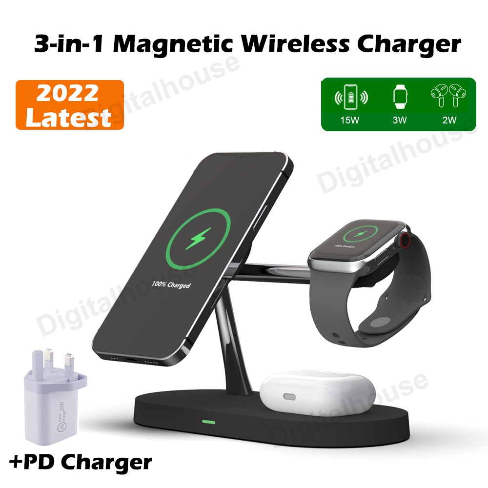 3 in 1 Magnetic Wireless Charger 15W Fast Wireless Charging Station for iP 13 12 Series