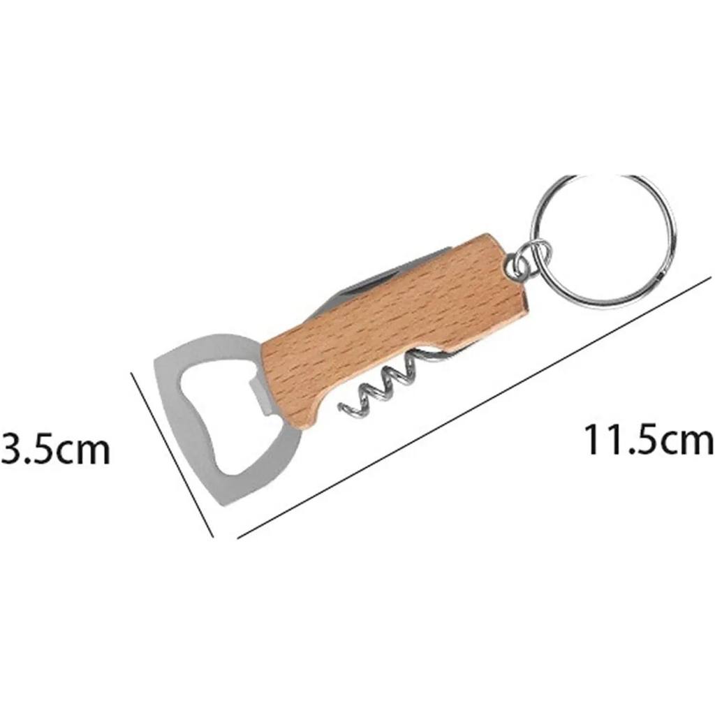 3 in 1 Mini Size Keychain Wooden Champagne Bottle Opener w/ Corkscrew and Wine Opener 11.5cm x 3.5cm