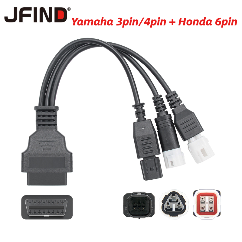 3 in 1 OBD 2 Connector For Motobike For Yamaha Moto 3PIN & 4PIN And Honda Motorcycle 6PIN To 16PIN OBD Diagnostics Connector Cable OBD2 Extension Cable
