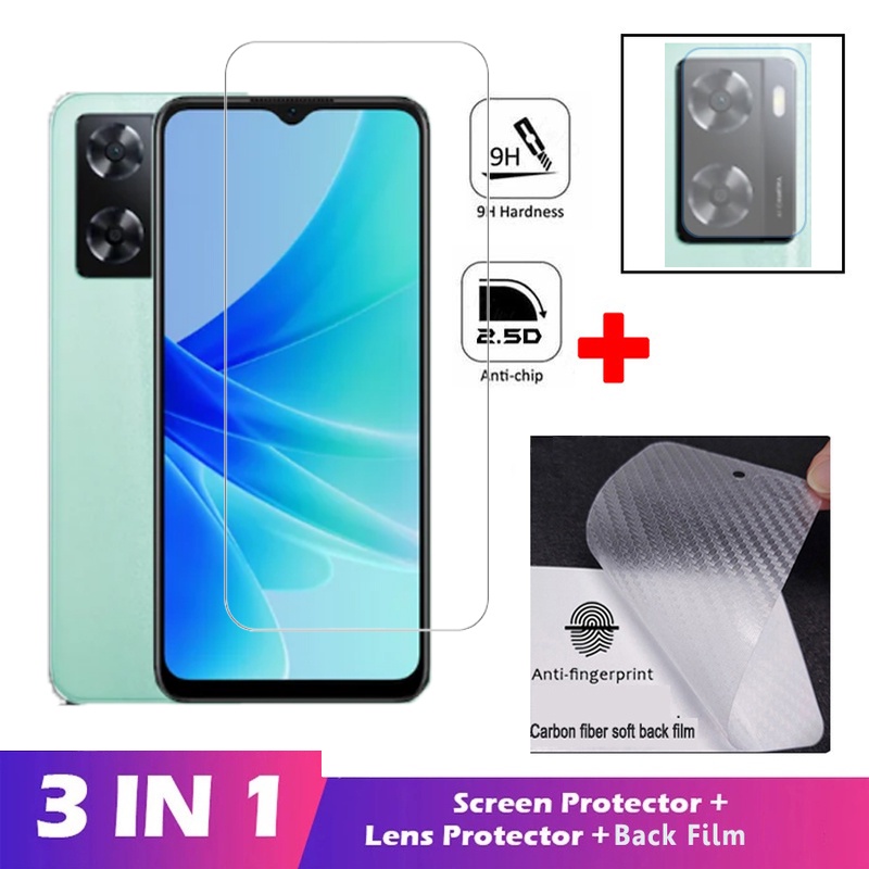 3-in-1 OPPO A57 2022 Tempered Glass Full Cover Screen Protector For OPPO A57 2022 A98 A78 A58 A38 A18 A17 A55 A96 A77s A16 A17k A16k A95 OPPO Reno 11 10 8T 8 7z 8z Peo+ 5G HD Glass Film