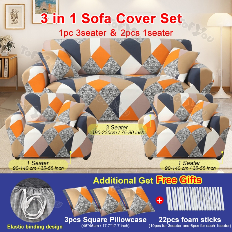 3 in 1 Sofa Cover Set 2 Pcs Single and 1 Pc 3 seater Set Sofa Cover Full Pack