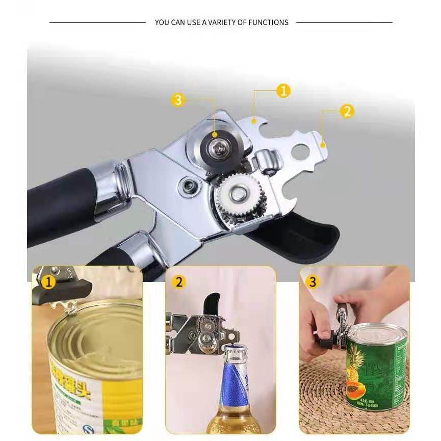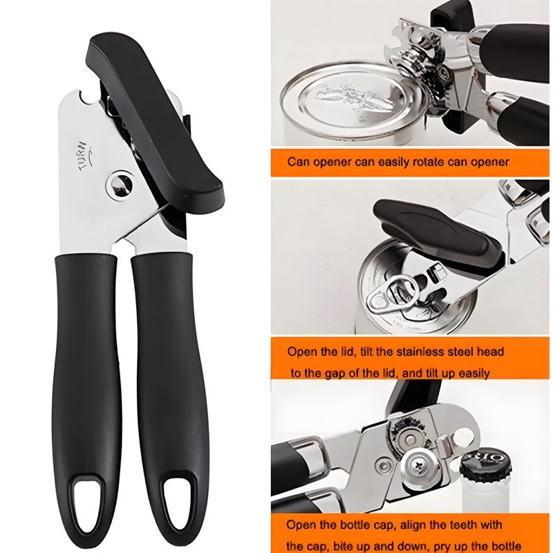 3-in-1 Stainless Steel Tin Opener Cordless Tin Opener with Lids Off Jar Opener and Bottle Opener