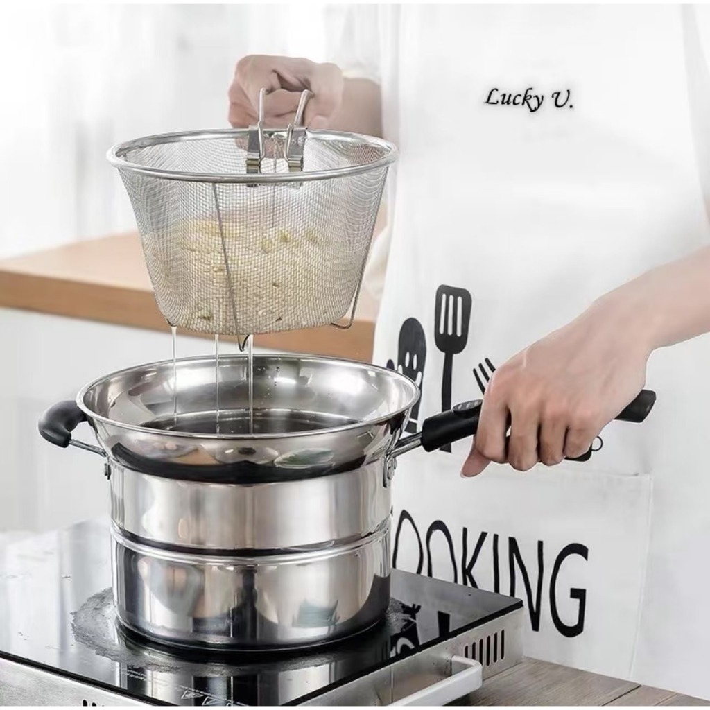 3 in 1 Stainless steel Steam and Deep Frying Cooking Pot with Boil Basket