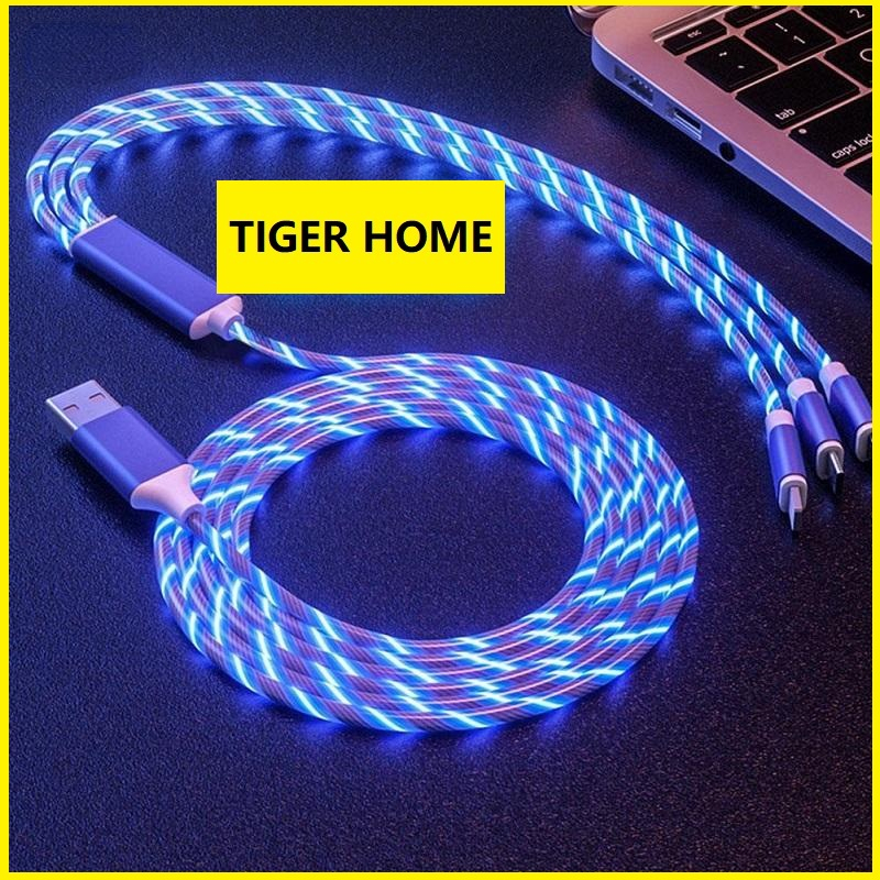 3 in 1 USB Fast Charger Flow Color LED Light Up USB Cable Fast Charging Cable for