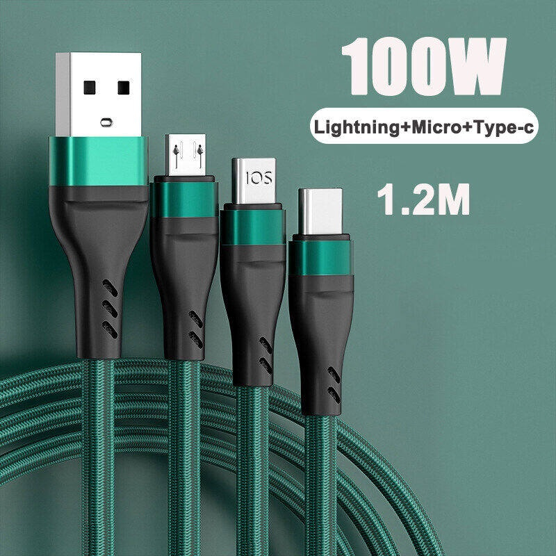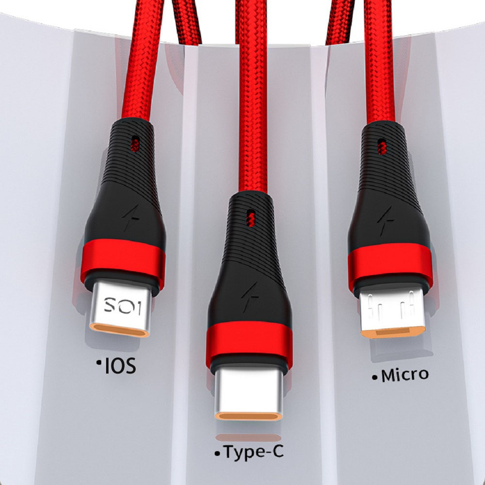 3-in-1 USB fast charging data cable 6A fast charging suitable for Type-C/Micro USB/Iph