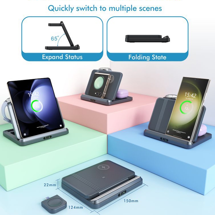 3 in 1 Wireless Charger Stand For Samsung Z Fold Zflip Foldable Fast Charging Dock Station For Apple