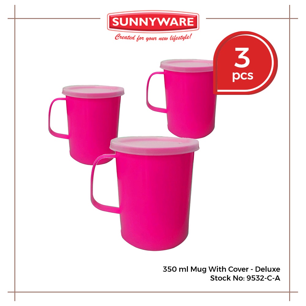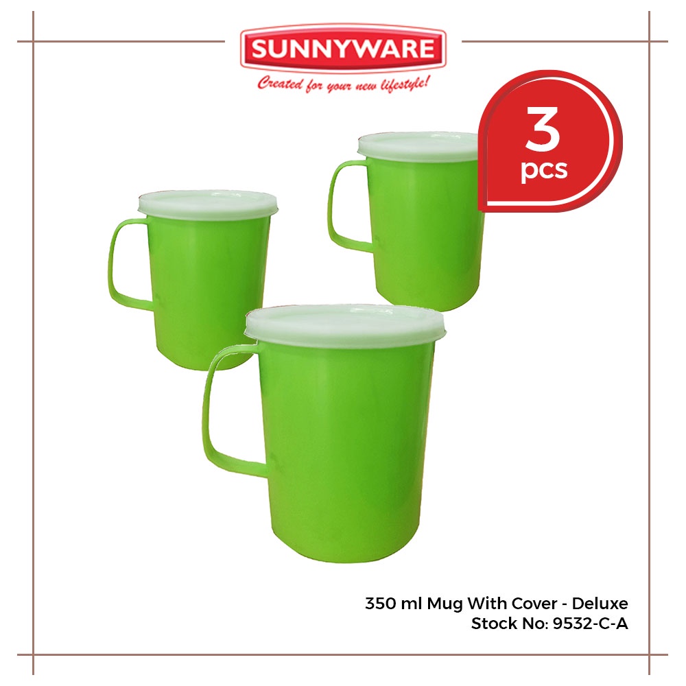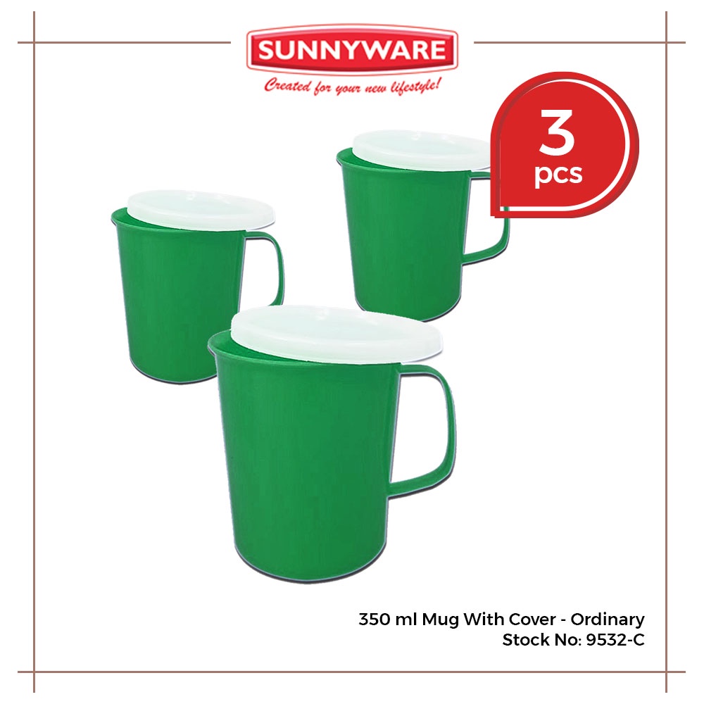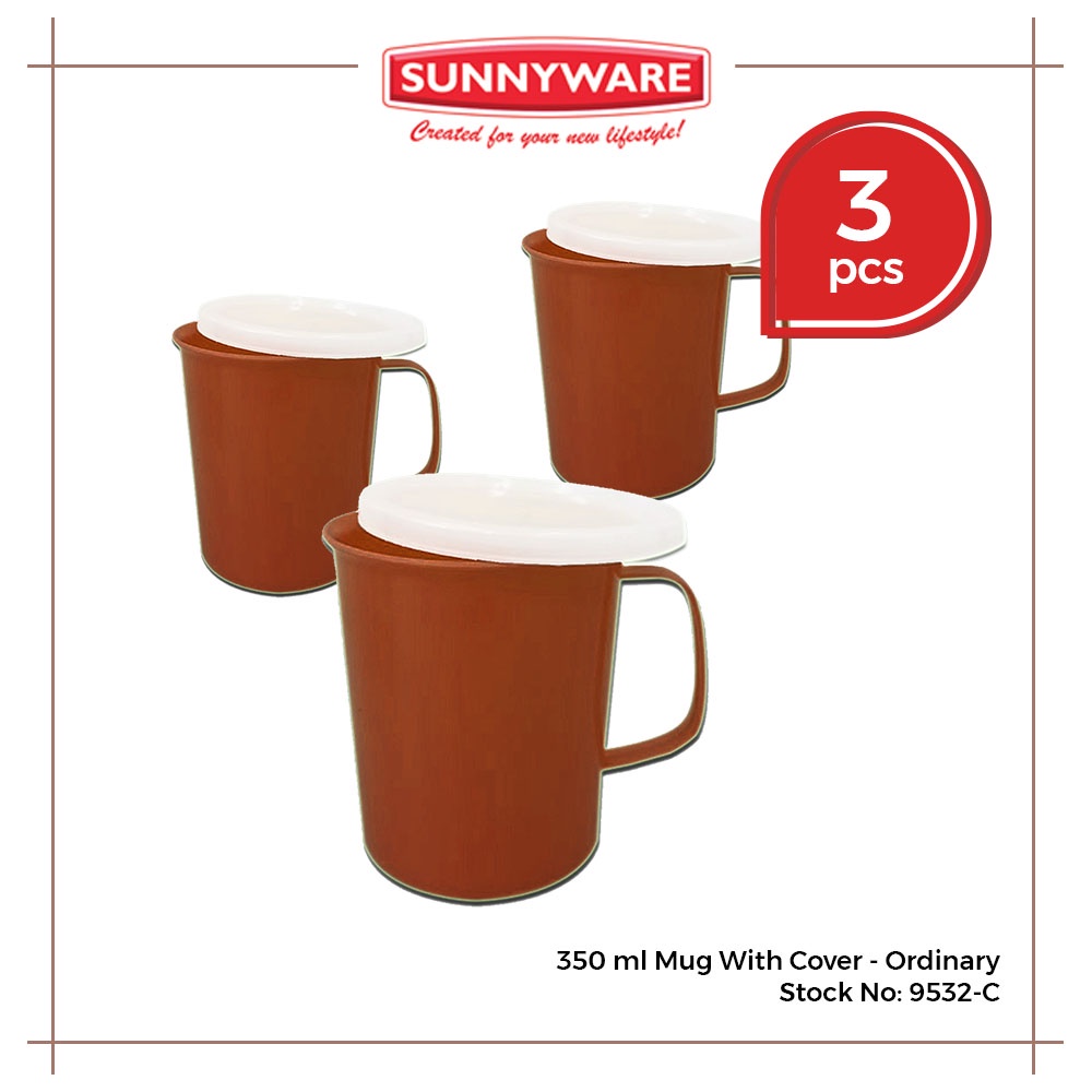 3 pcs 350ml Mug with Cover - Deluxe and Ordinary [Sunnyware 9532-C] | Cup | Mugs