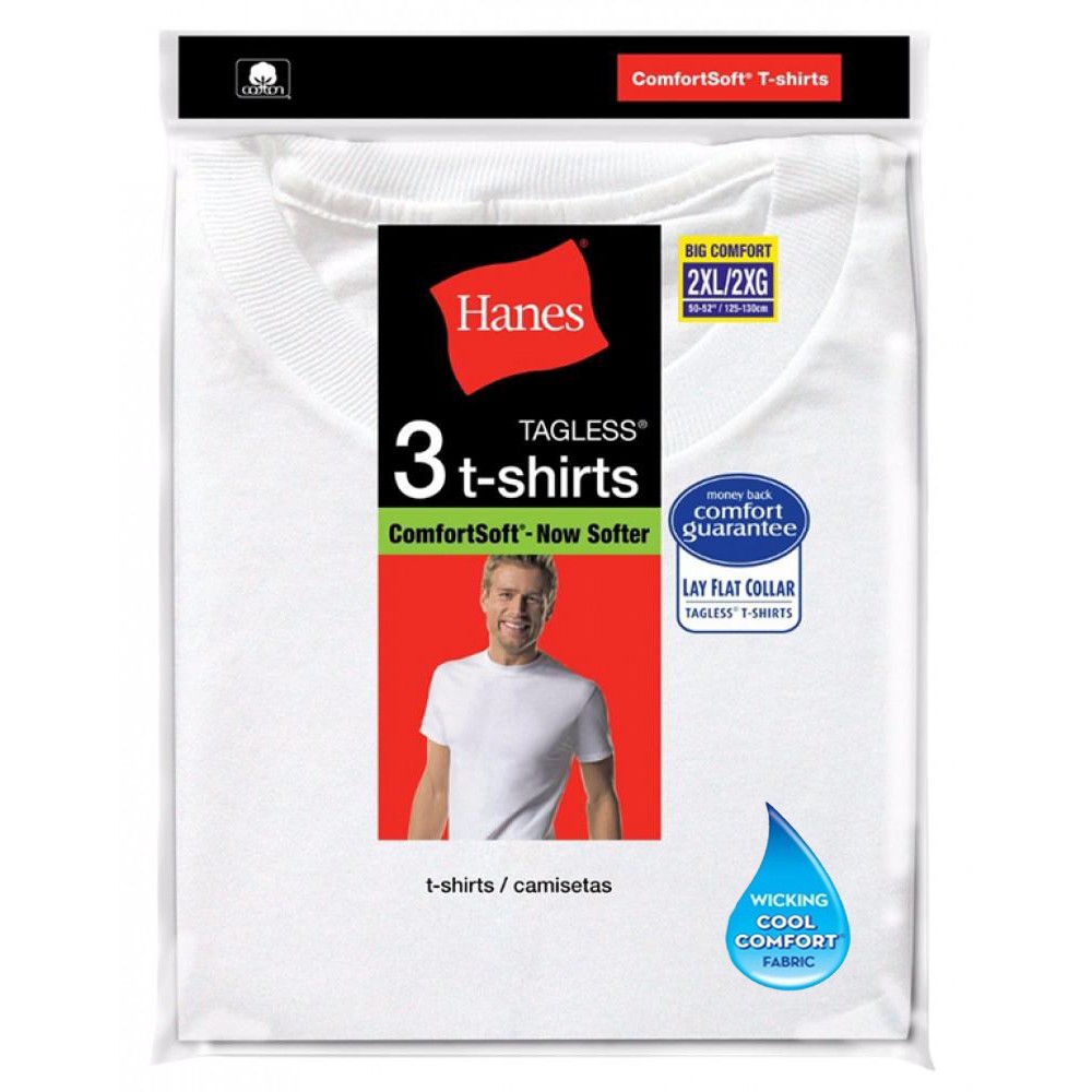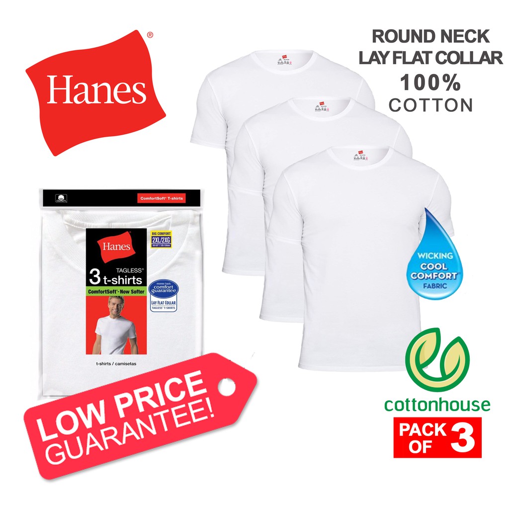 3 pcs HNS Round Neck T-Shirt (Lay Flat Collar) 100% Cotton White