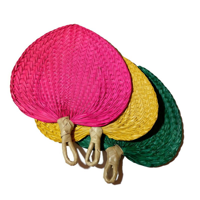 3 pieces Locally Made Abaniko Green - Hand Weaved Pamaypay Native Filipino Cool Summer Fan