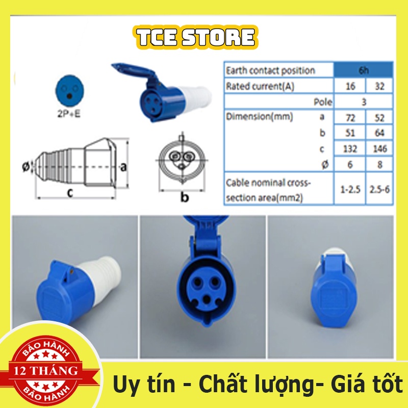 3-pin single-phase 16A industrial socket, waterproof and shockproof