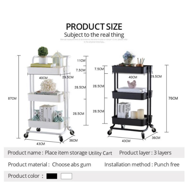 3 tier TROLLEY UTILITY CART Organizer ABS Plastic