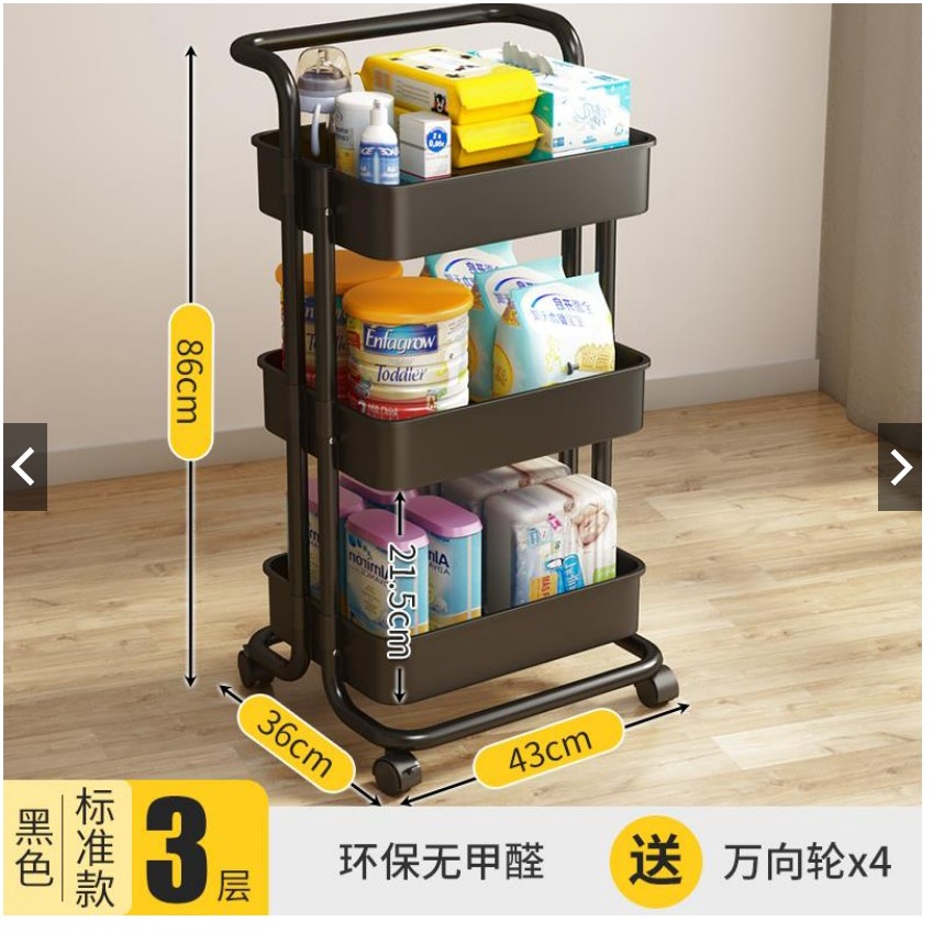 3-tier steel shelf with wheels + handles, cart, cart, shelf, food cart shelf