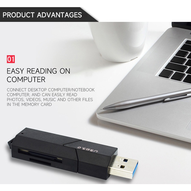 3.0 SD Card Reader USB SD TF Memory Card Reader Adapter 2 in 1 for SD Plug and Play on Windows