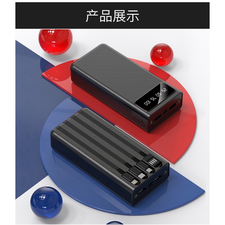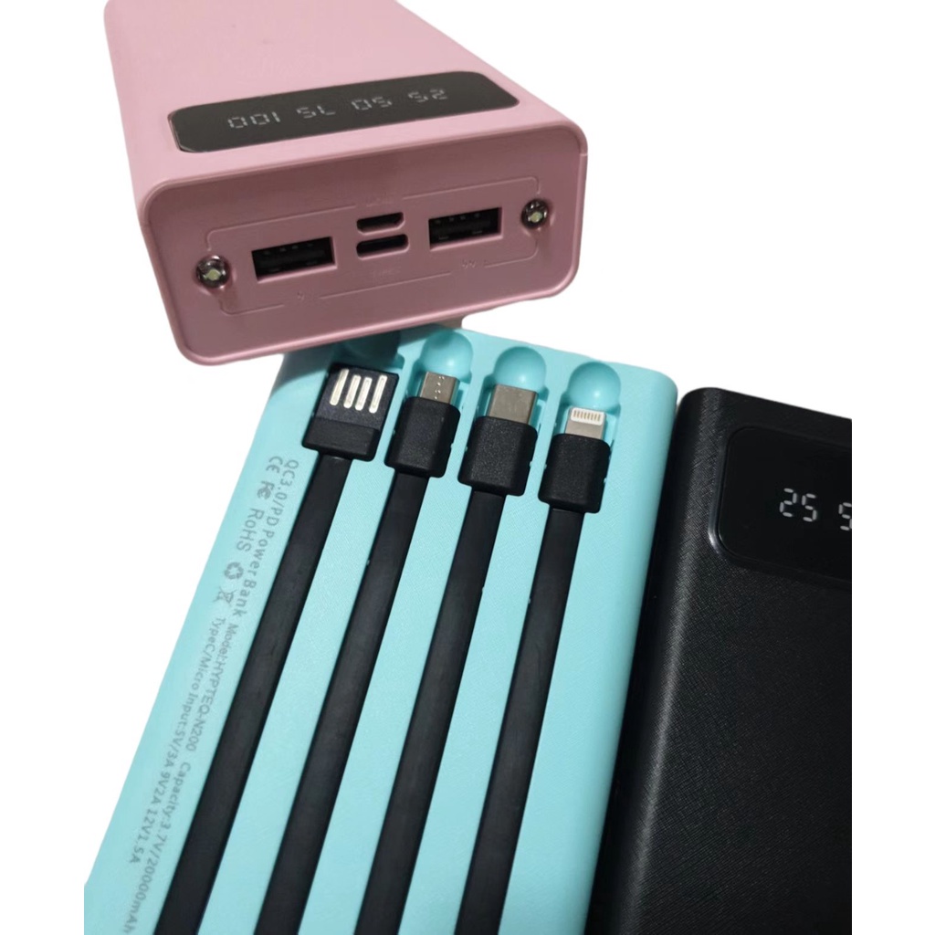 3.1A Fast Charging Powerbank With Torch 20000mAH Powerbank Built-in 4 Cables