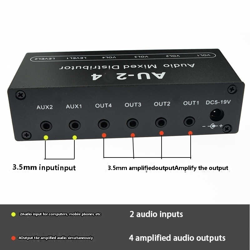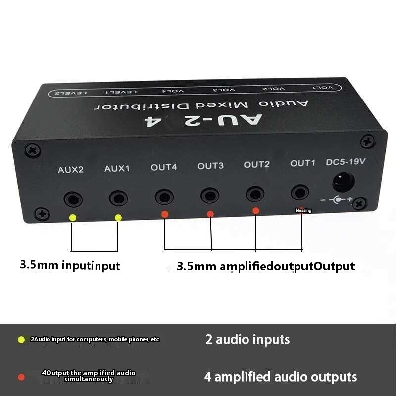 3.5 Headphone Splitter AUX Frequency Divider Amplifier Hybrid Sound Card Dual Stereo Two In Four Out